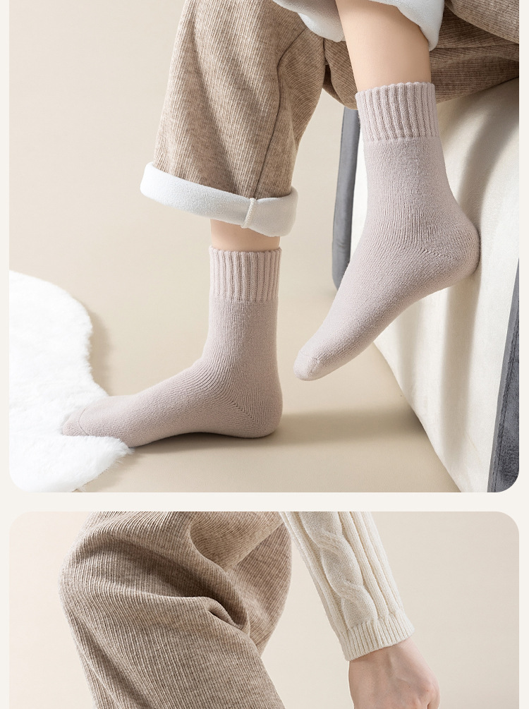 羊绒袜子女秋冬季加厚月子袜毛巾袜中筒拉绒毛圈袜冬天加绒加厚女