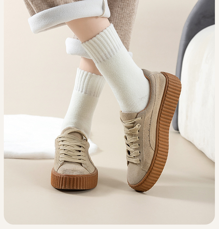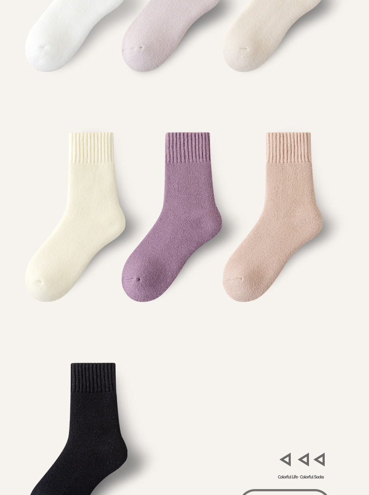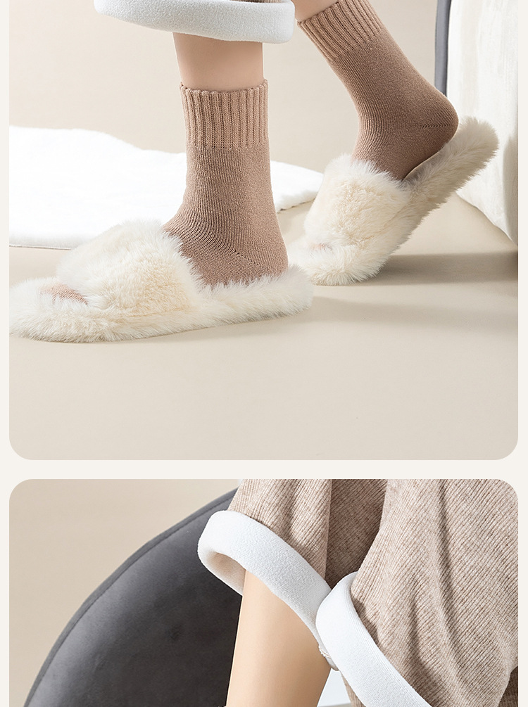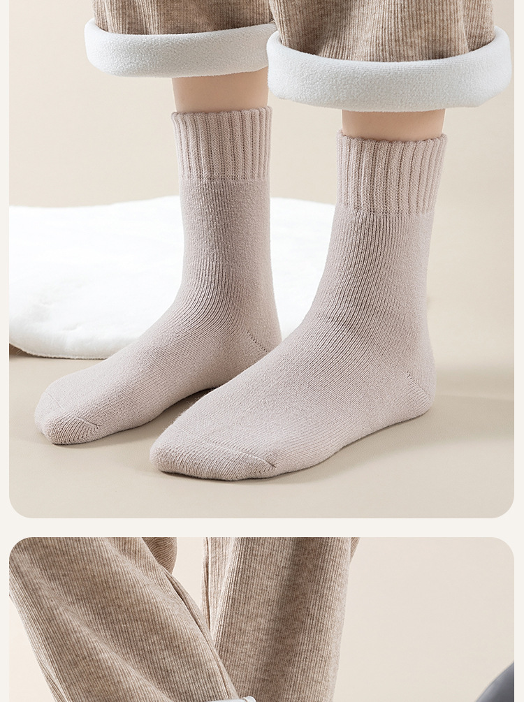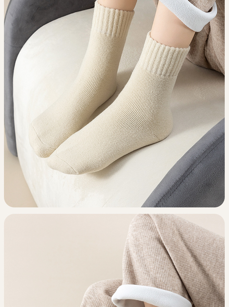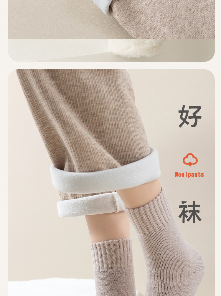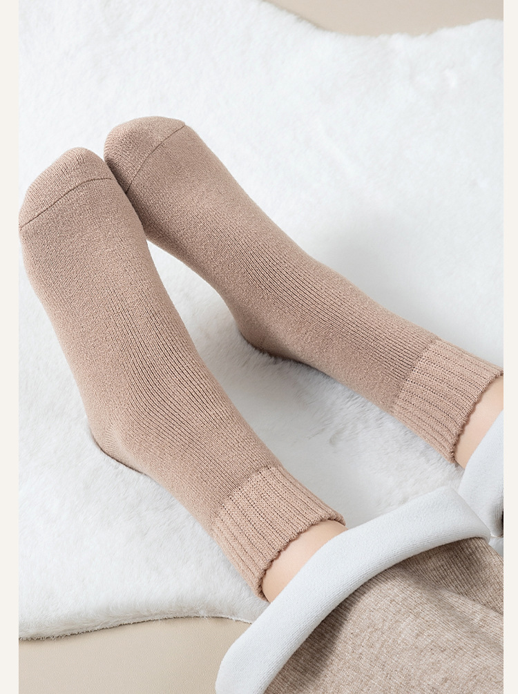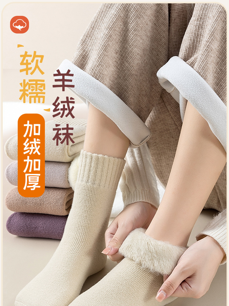 加绒袜子女秋冬加厚保暖羊绒地板袜厂家中筒月子袜纯色暖绒睡眠袜
