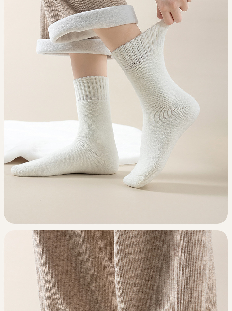 加绒袜子女中筒袜冬季雪地袜冬季加厚保暖家居绒地板袜冬天睡眠袜