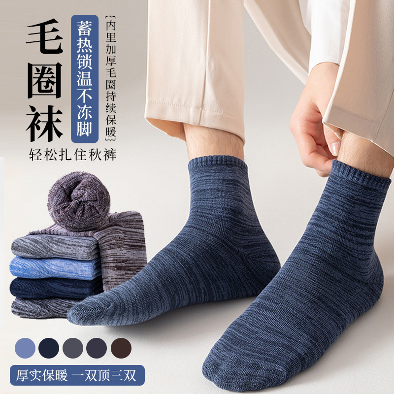 袜子男冬季加绒加厚保暖毛圈袜男士中筒地板袜并线毛巾袜冬天批发