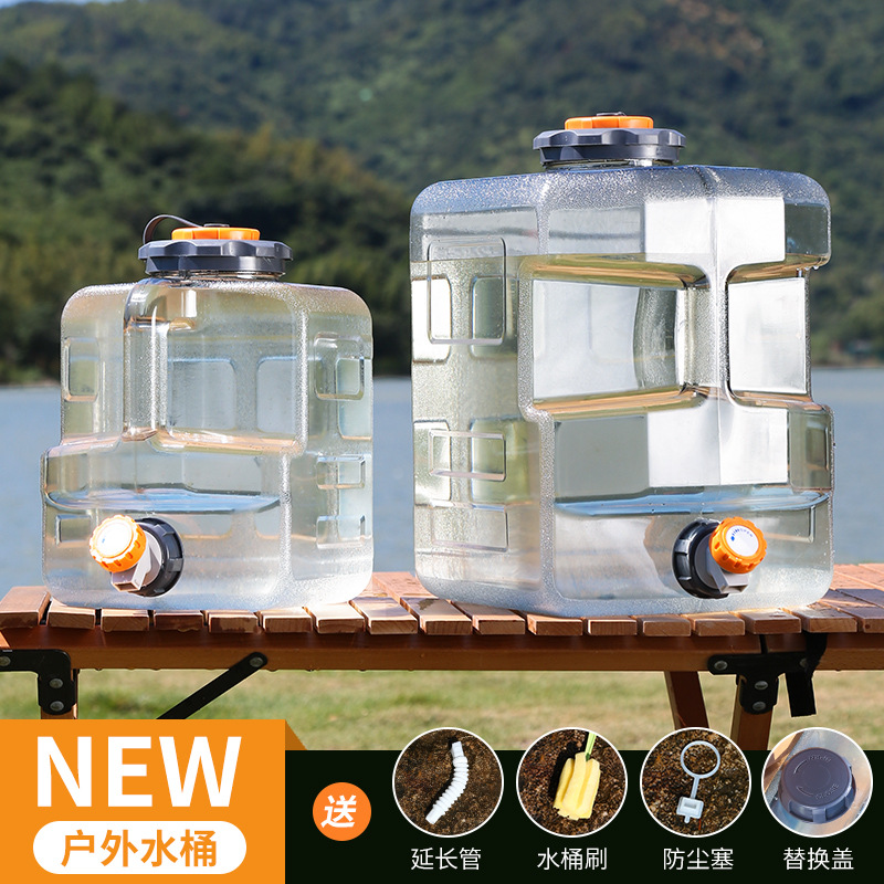 新款PC灰色透明方桶,适用于户外家居车载露营,桶身灰色透明,新升级设计,大盖子可以插抽水器,专业定制,可以定制logo,定制不干胶标签,定制包装,源头工厂,量大优惠,详询联系客服