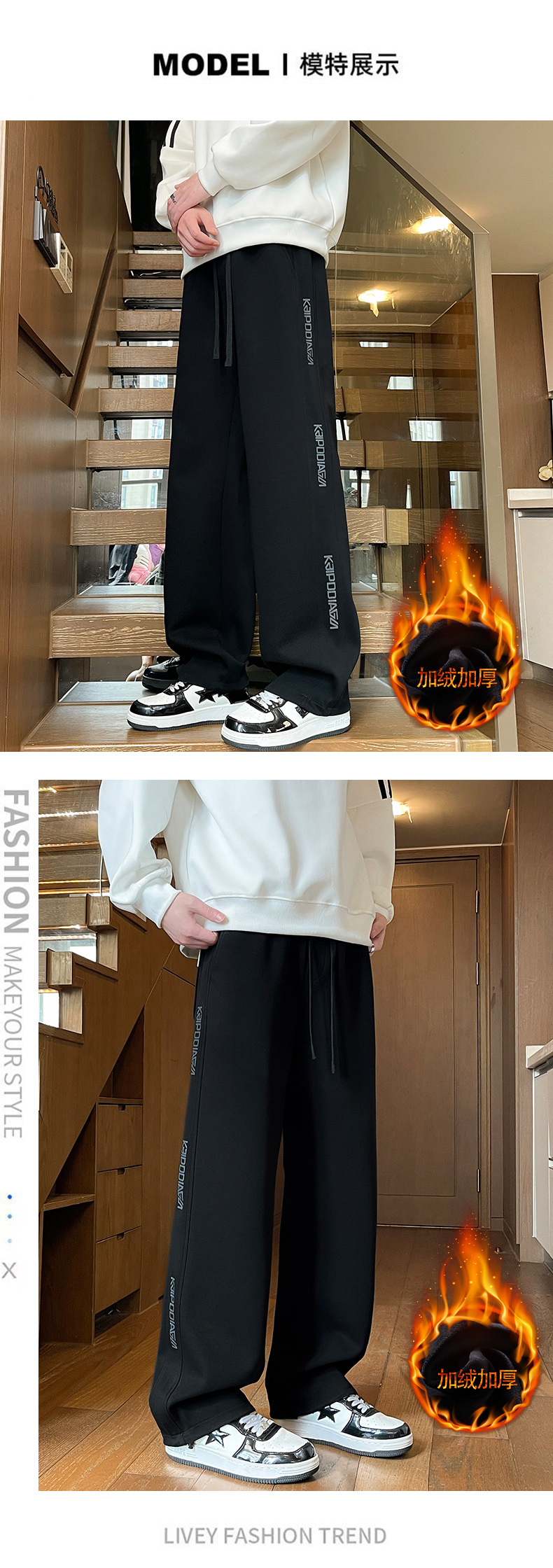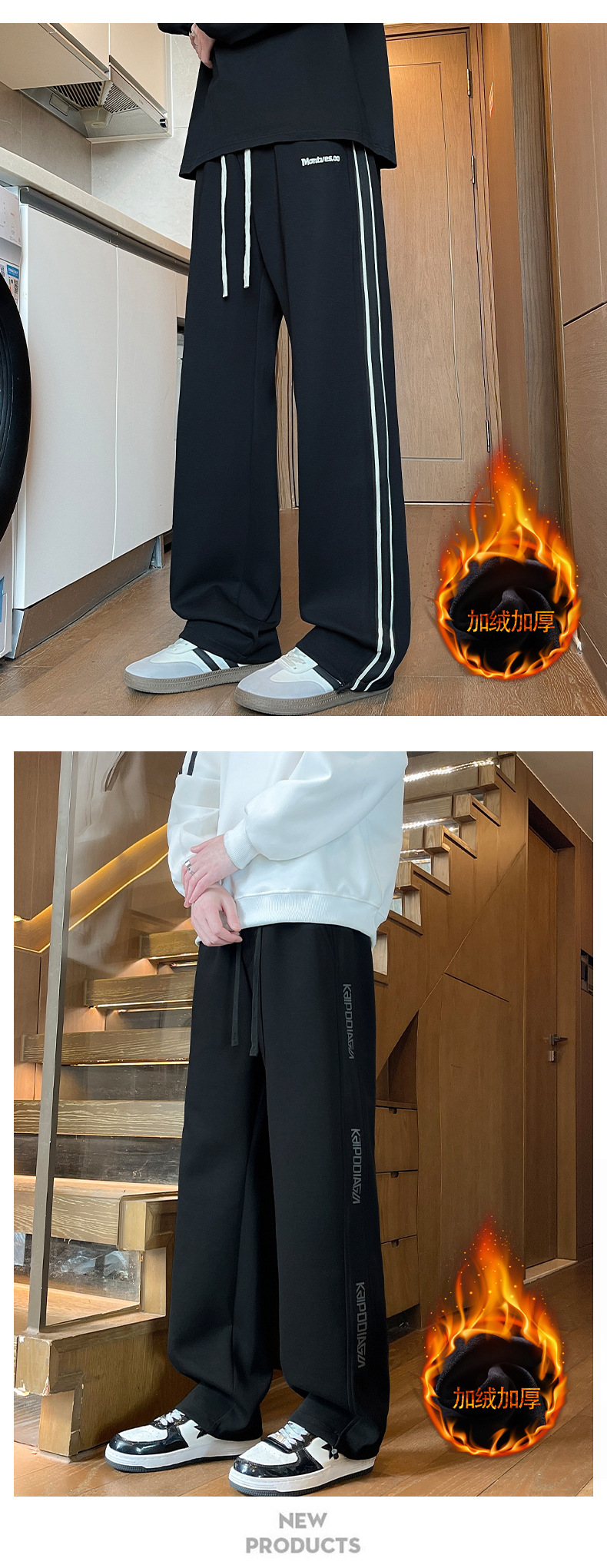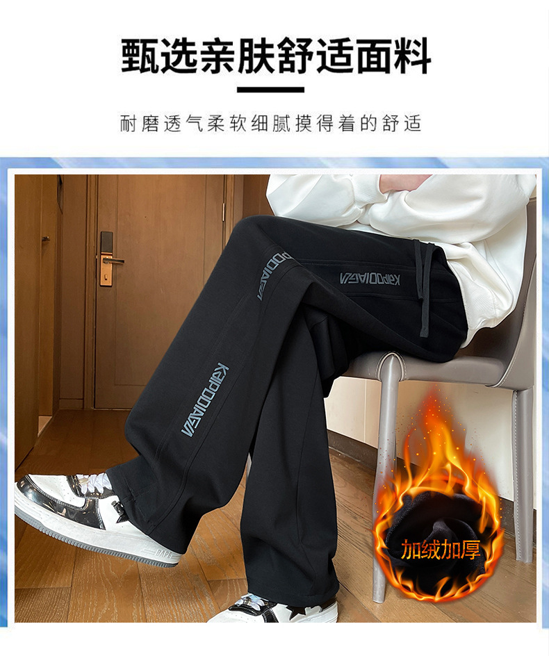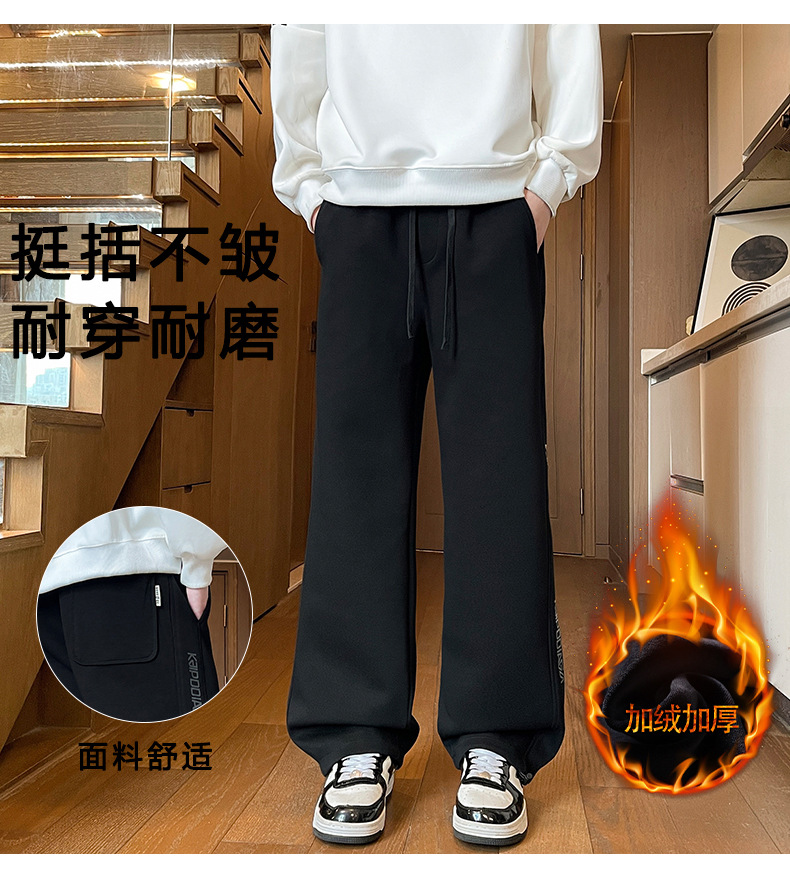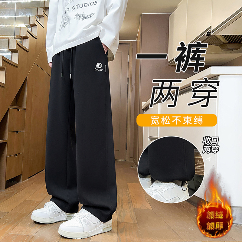 卫裤男生加绒加厚休闲裤青少年初高中学生保暖百搭阔腿直筒裤男装