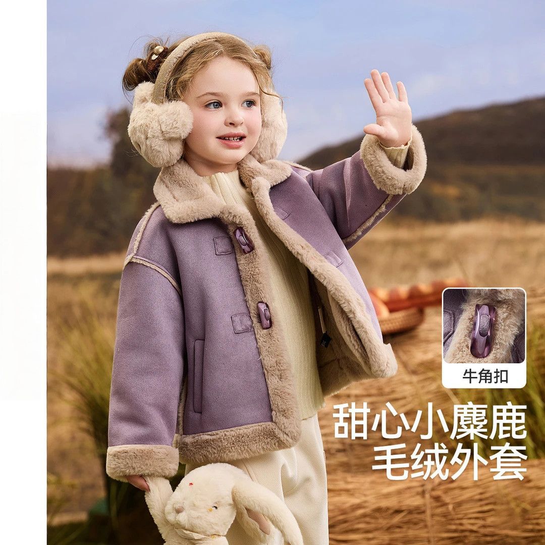 女童秋冬新款外套2025冬装儿童休闲加绒皮毛一体上衣