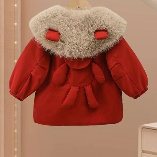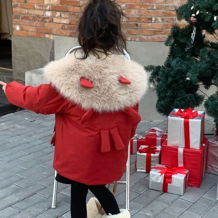 女童加绒派克服外套冬装2025新款儿童冬季棉服红色女孩新年服洋气