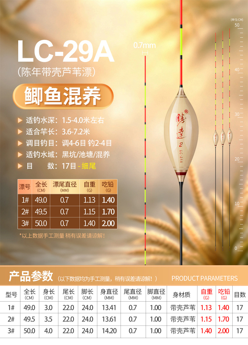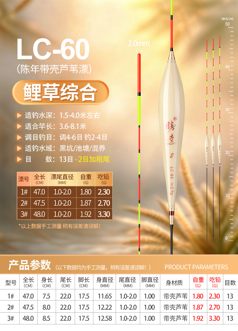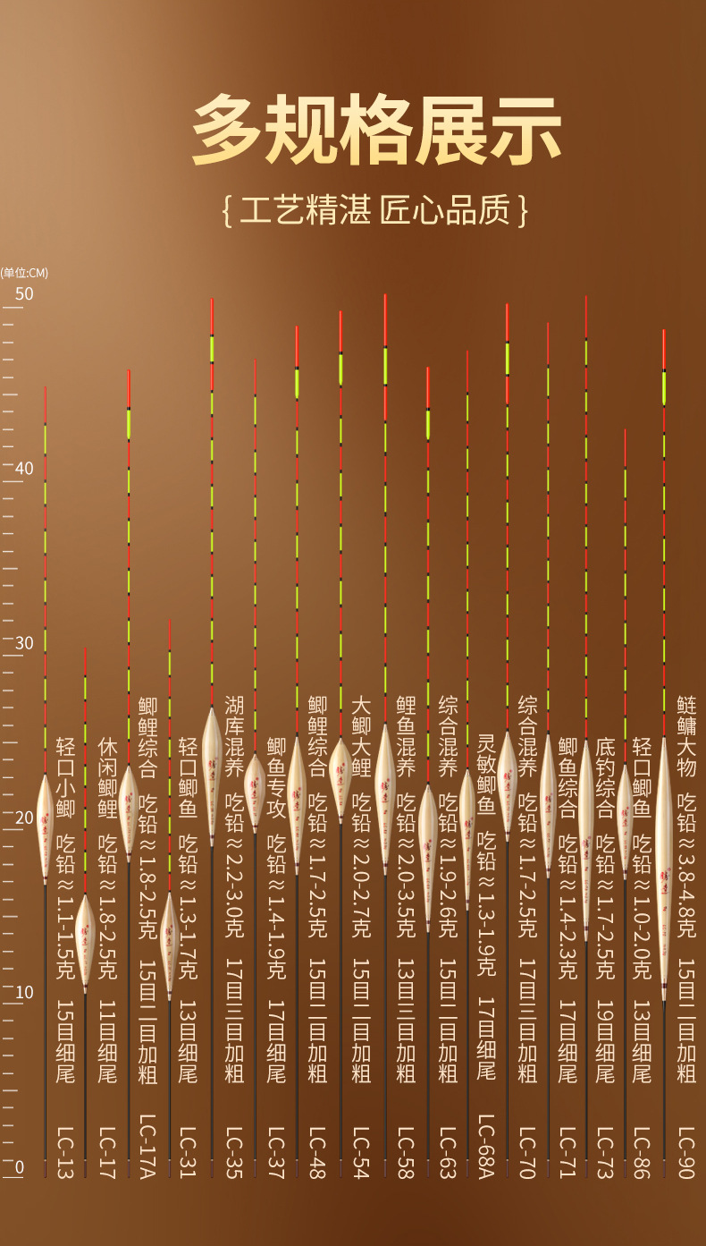 规格 L-02【草鱼综合】,L-04【远投打浮】,L-07【鲢鳙大物】,L-09【远投大物】,L-12【鲫鲤混养】,L-13【轻口鲫鱼】,L-17【休闲鲫鲤】,L-17A【鲫鲤综合】,L-21【鲢鳙大物】,L-29A【鲫鱼混养】,L-29B【鲤草综合】,L-30【鲢鳙大物】,L-31【轻口鲫鱼】,L-35【湖库混养】,L-36【鲤草混养】,L-37【鲫鱼专攻】,L-47A【罗飞鲫鱼】,L-47B【罗飞鲫鱼】,L-48【鲫鱼专攻】,L-53【鲫鲤混养】,L-54【大鲫大鲤】,L-56【轻口滑口】,L-58【鲤鱼混养】,L-59【鲤草青鱼】,L-60【鲤草综合】,L-63【综合混养】,L-68A【综合混养】,L-68B【综合混养】,L-69【综合混养】,L-70【综合混养】,L-71【 鲫鱼综合】,L-73【底钓综合】,L-78【 鲢鳙大物】,L-86【轻口鲫鱼】,L-88【 鲫鲤混养】,L-90【鲢鳙大物】,L-91【鲫鲤混养】,L-92【鲤草青鱼】,L-96A【大小鲫鱼】,L-96B【鲫鲤混养】