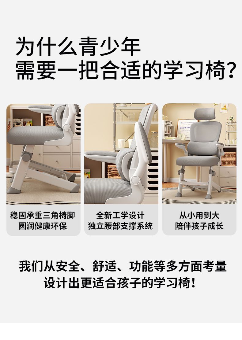 家用舒适宿舍书桌椅青少年初高中学生专用可升降多维矫姿学习椅子