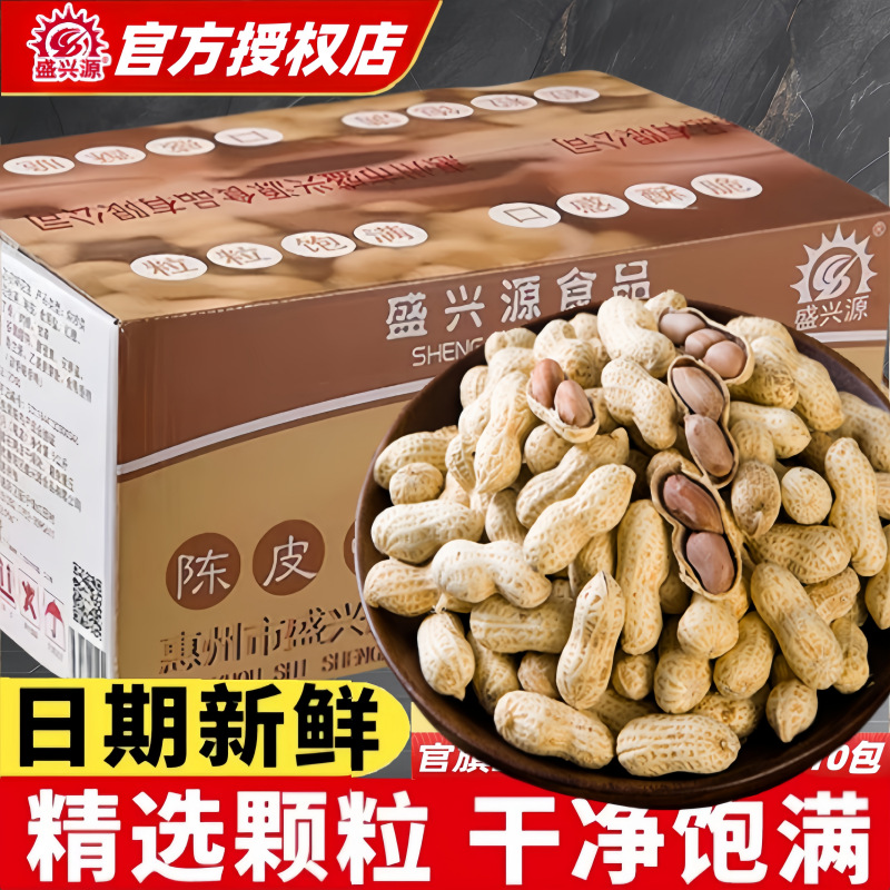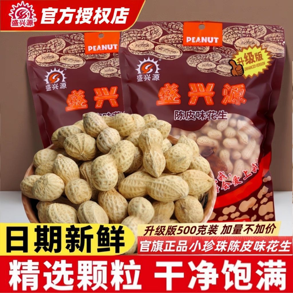 升级版盛兴源陈皮味花生500g袋装带壳香酥小花生休闲零食陈皮花生