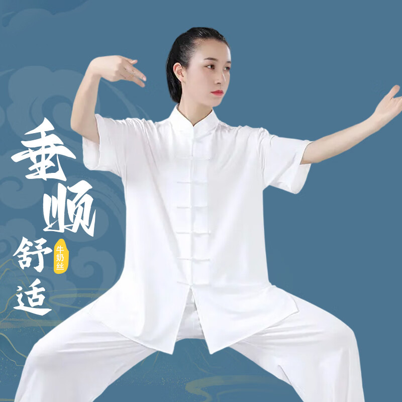 ミルク糸太極服練習服朝練習服卸売り男女同服セット春夏ショー氷糸トレーニング服