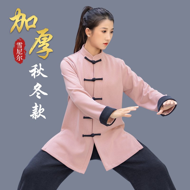 秋冬款加厚太极服女高端南韩绒镶领太极拳练功服加绒武术服表演服