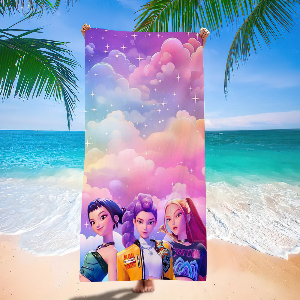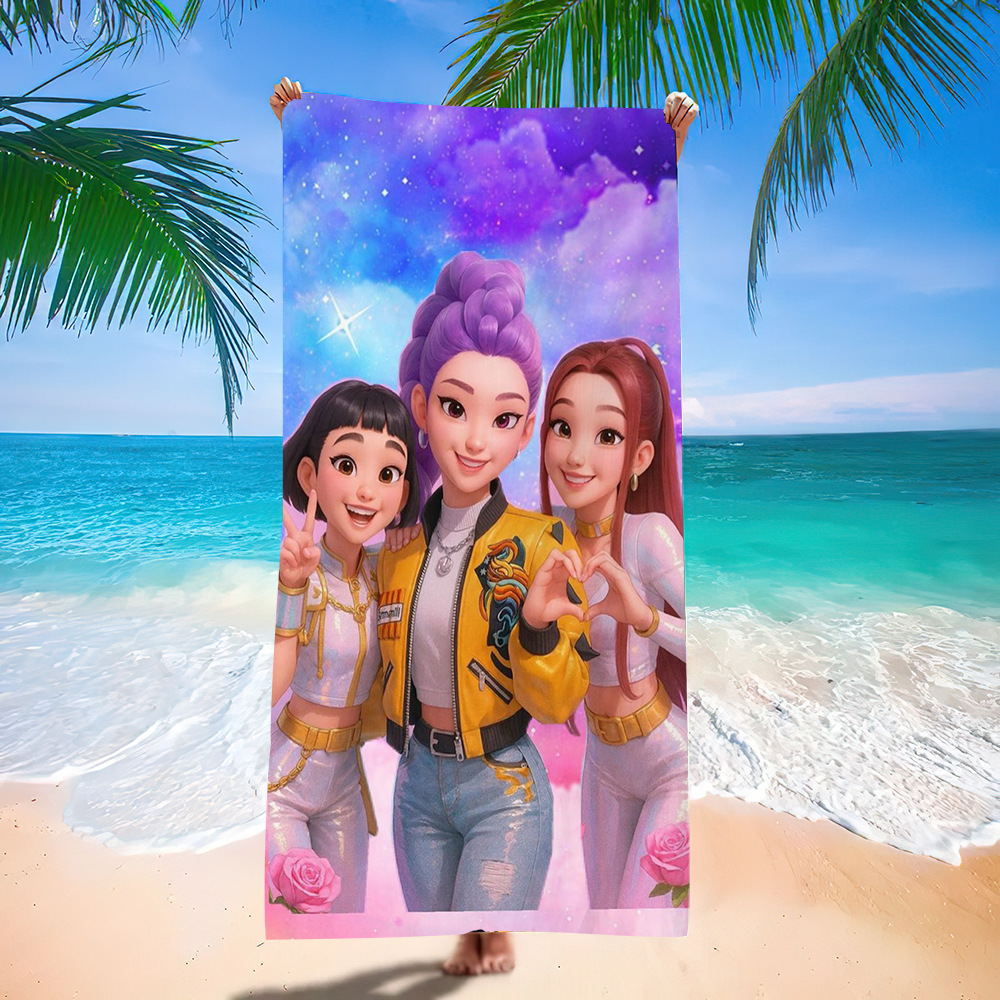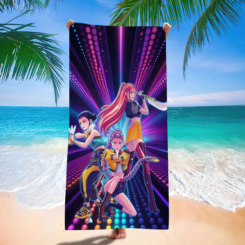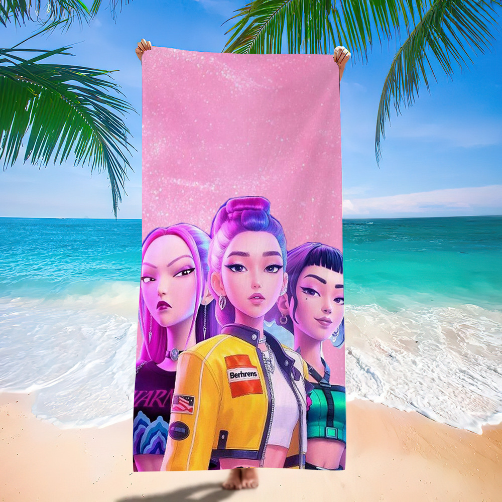跨境希音temu K-POP 猎魔女团系列涤纶超细纤维吸水沙滩巾速干巾