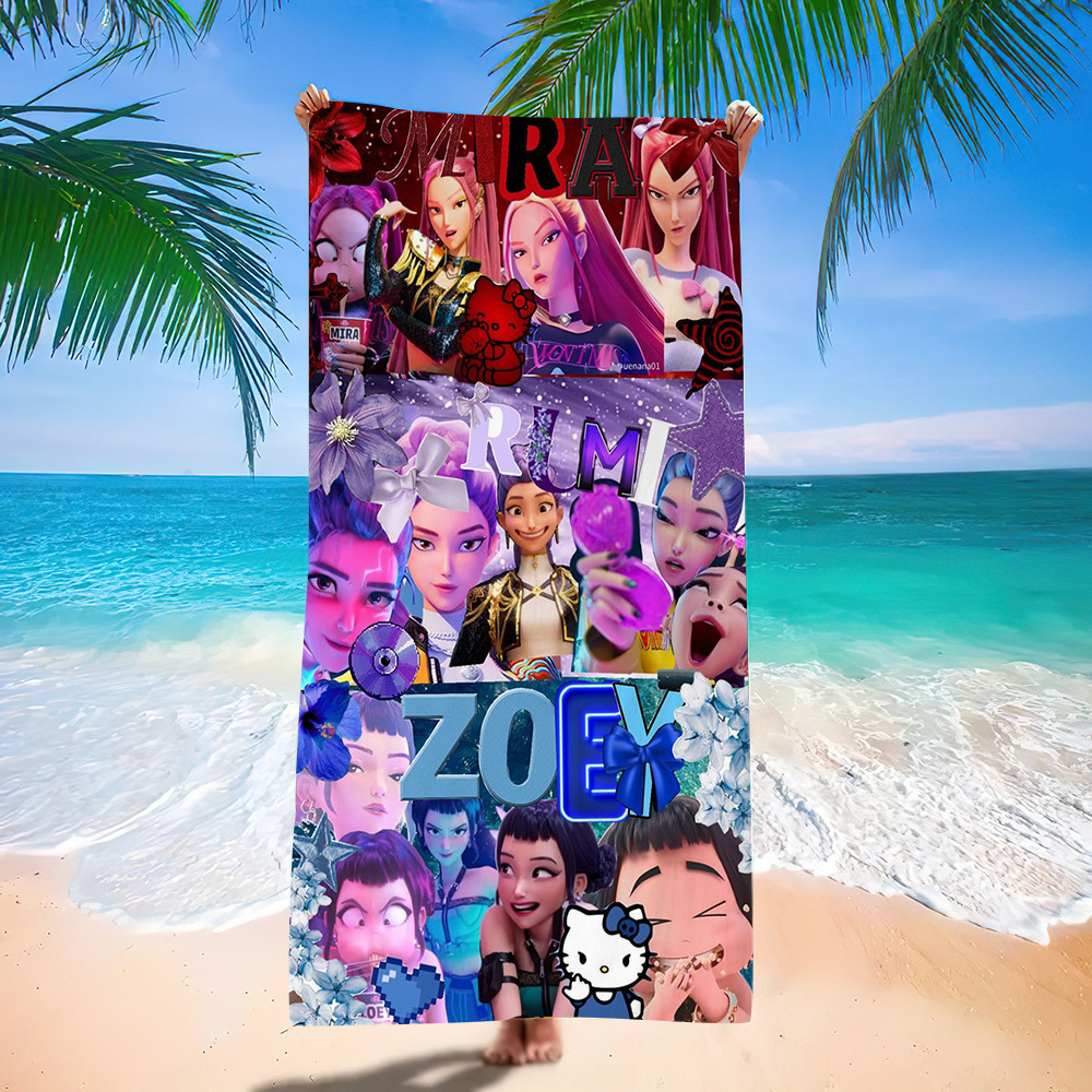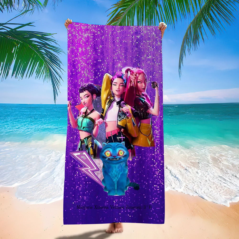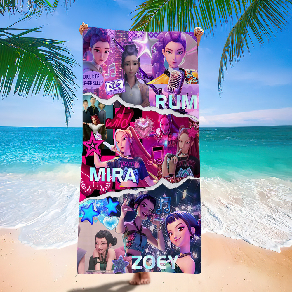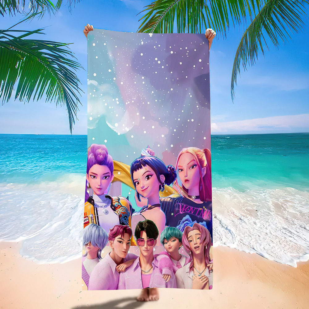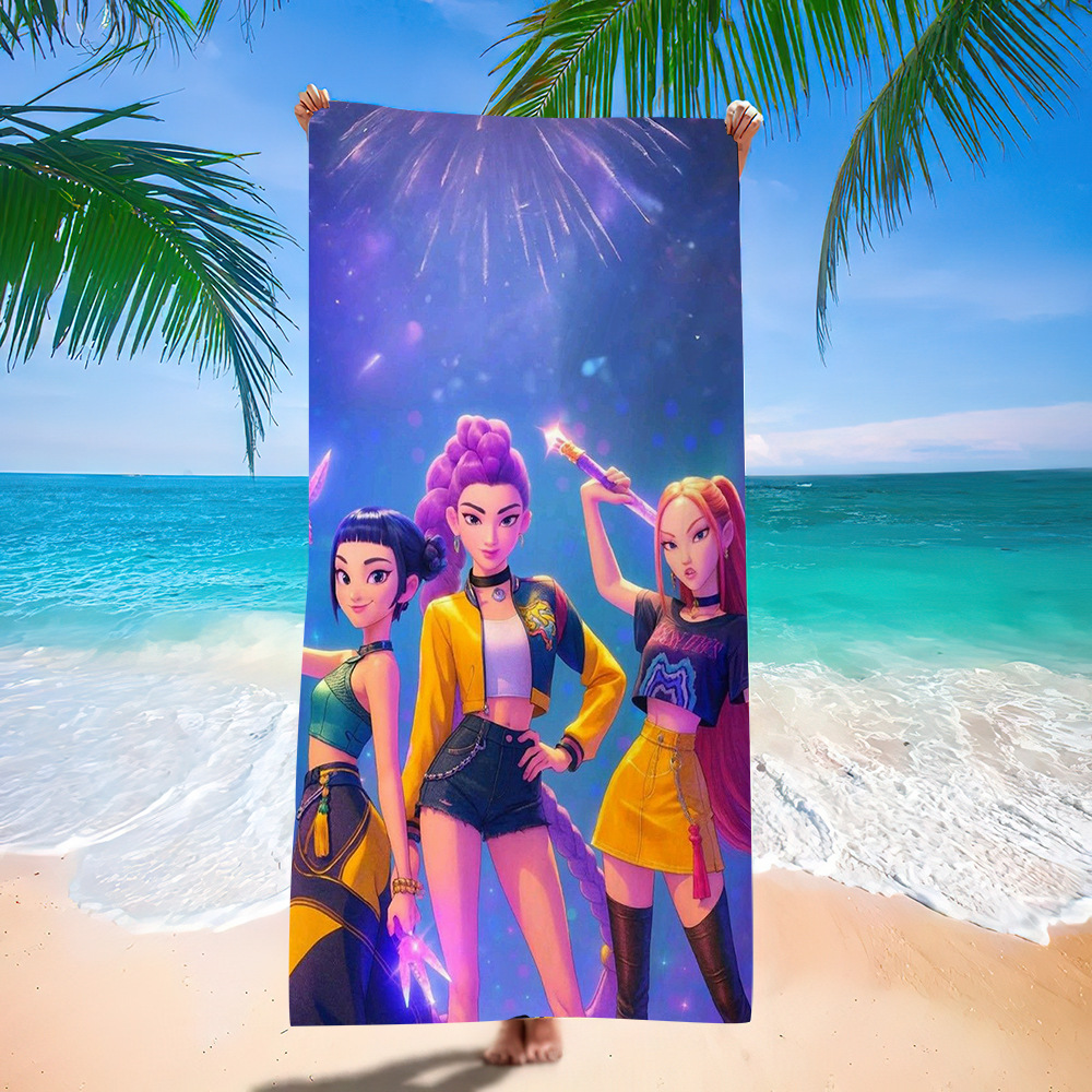 跨境希音temu K-POP 猎魔女团系列涤纶超细纤维吸水沙滩巾速干巾