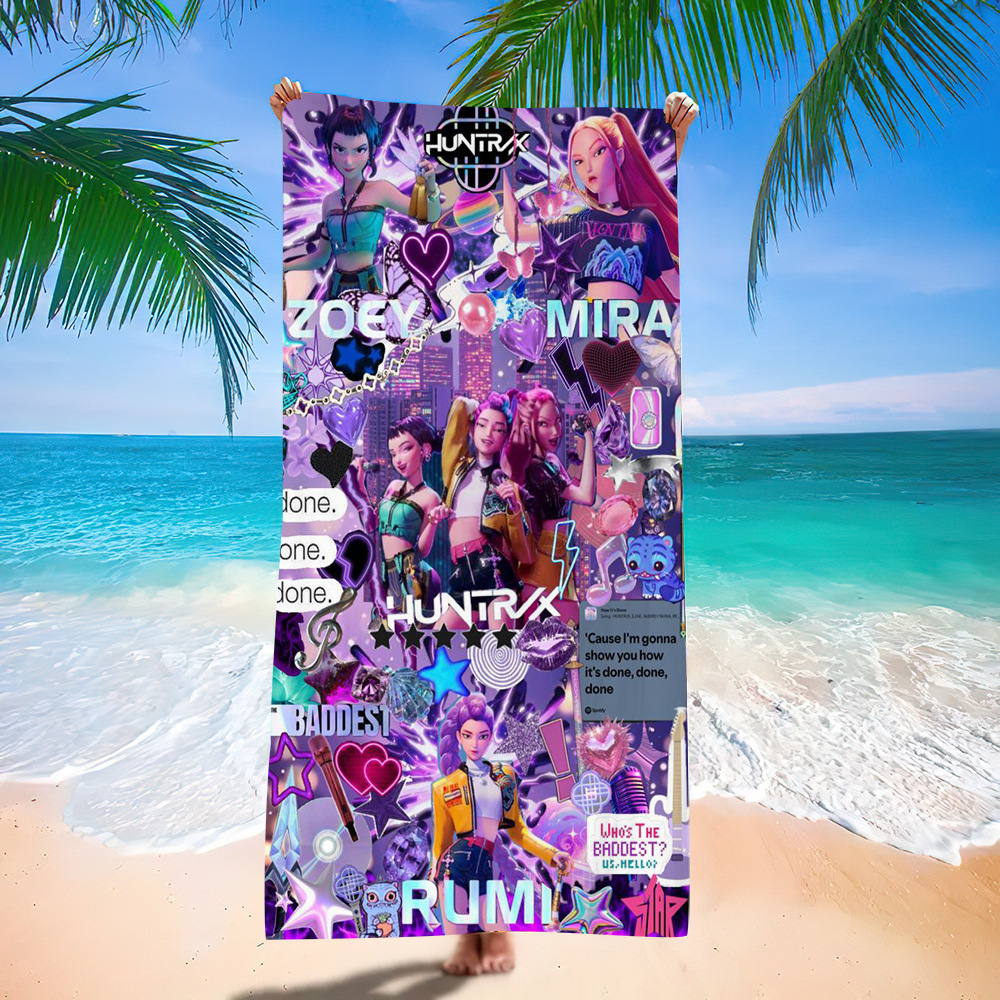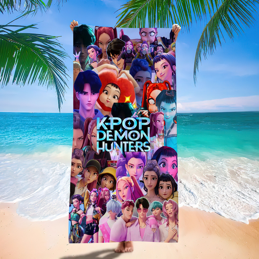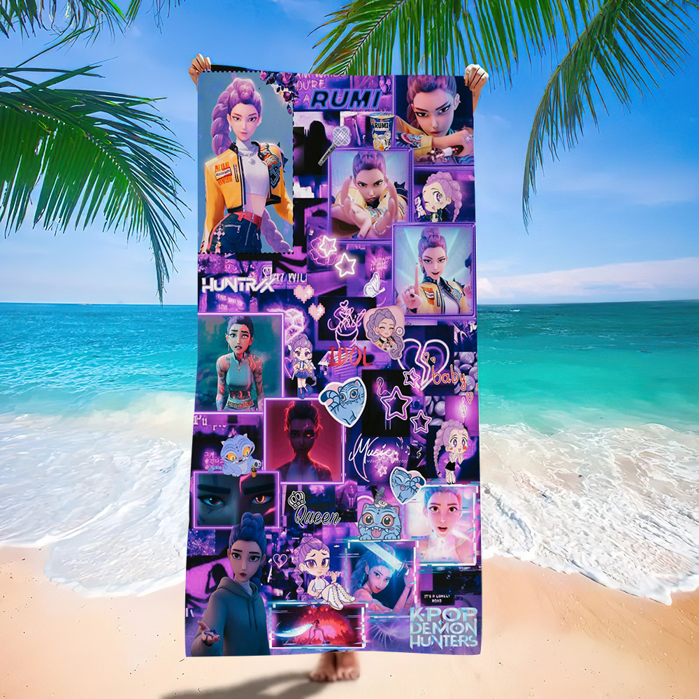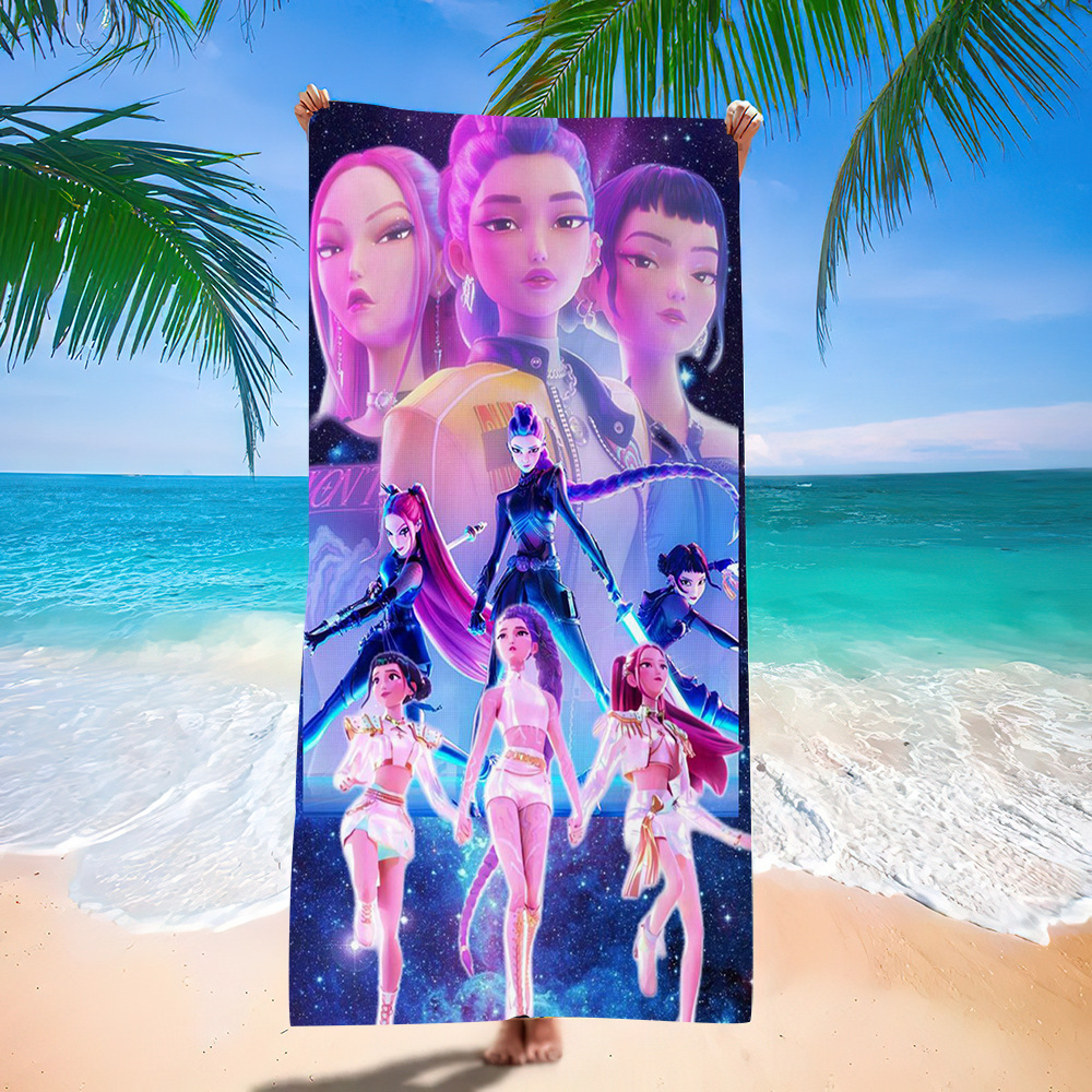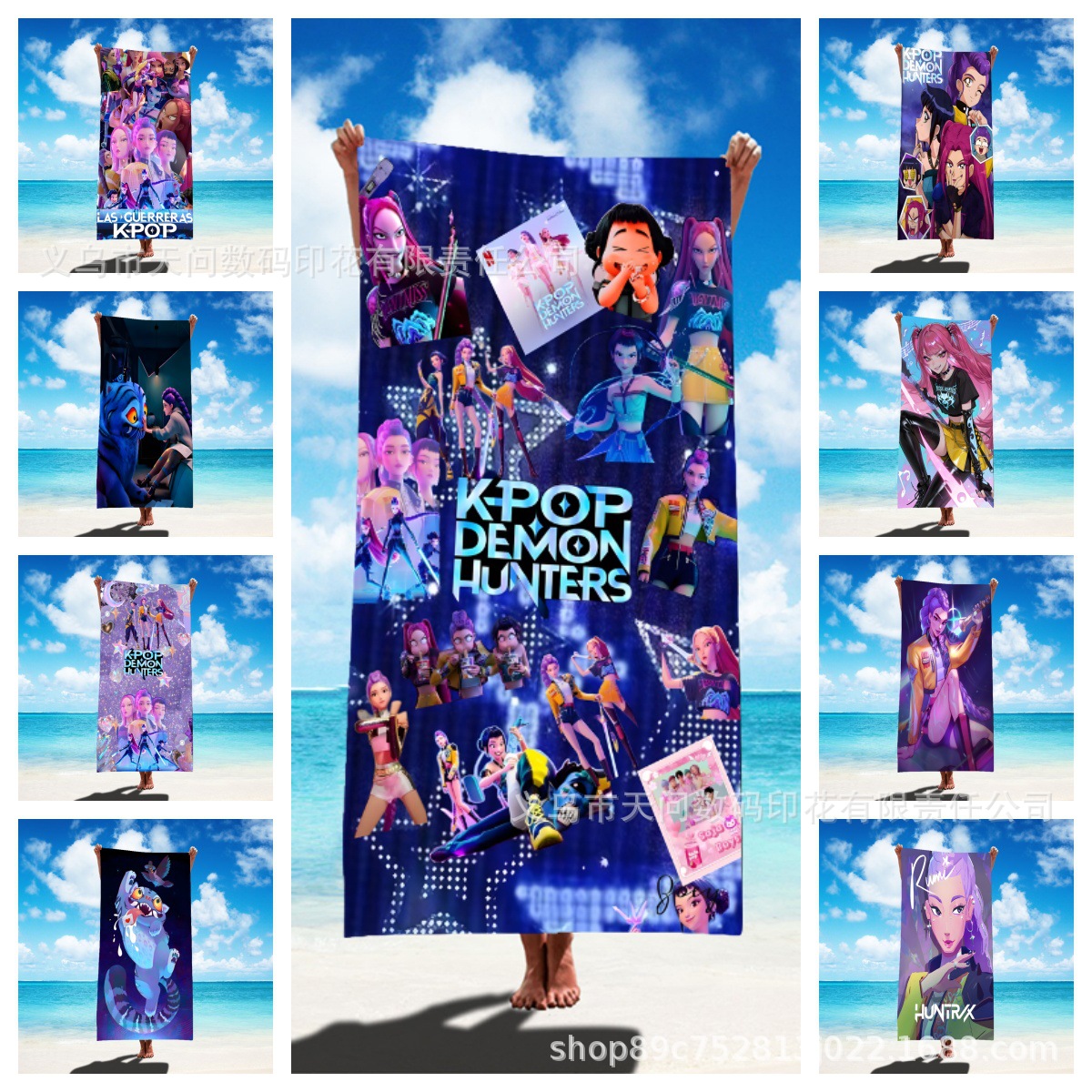 2025跨境爆款猎魔女团沙滩巾超细纤维浴巾双面绒速干巾kpop外贸