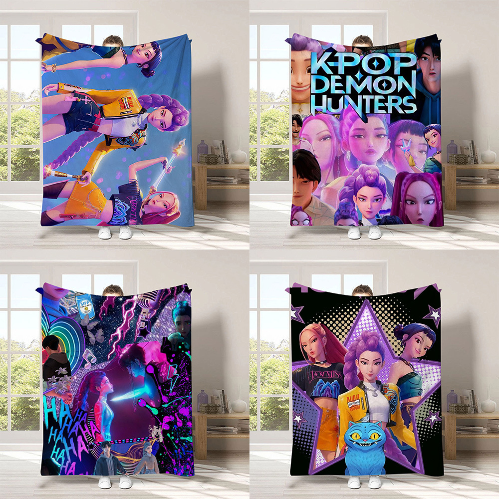 2025新番爆款K-POP猎魔女团跨境办公室午休毛毯法兰绒沙发盖毯