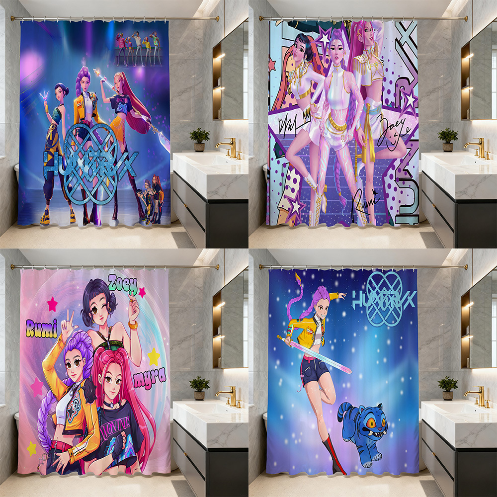 temu希音tiktokjit代发浴帘涤纶跨境爆款猎魔女团防水防霉浴帘亚