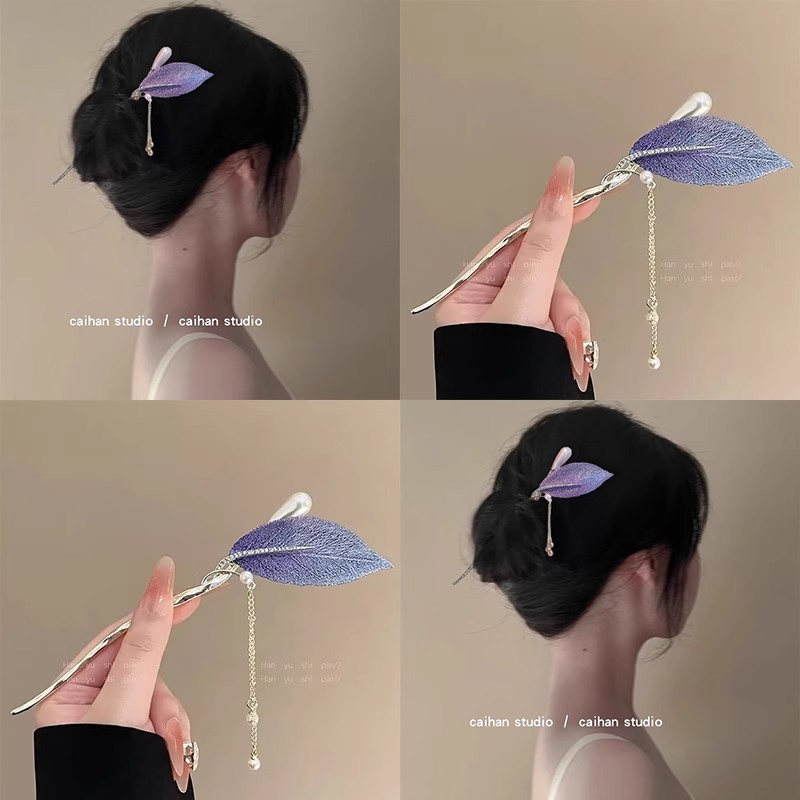 ヘアピン紫の葉金属ヘアピン女性のハイエンドボールヘアピン新しい中国風のモダンなヘアピン頭飾り