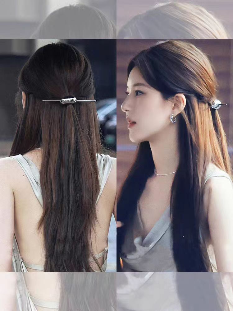 许我耀眼许妍赵露思同款新中式银色月牙发簪高级半扎发中国风簪子