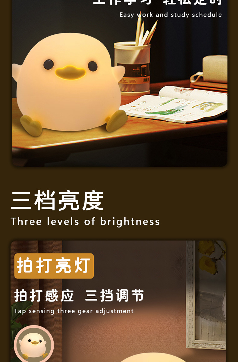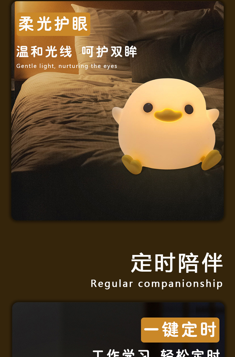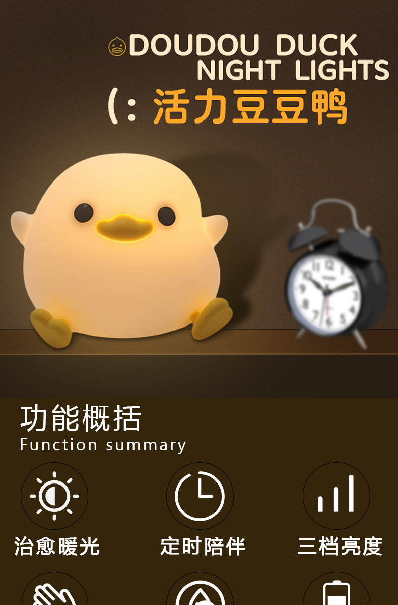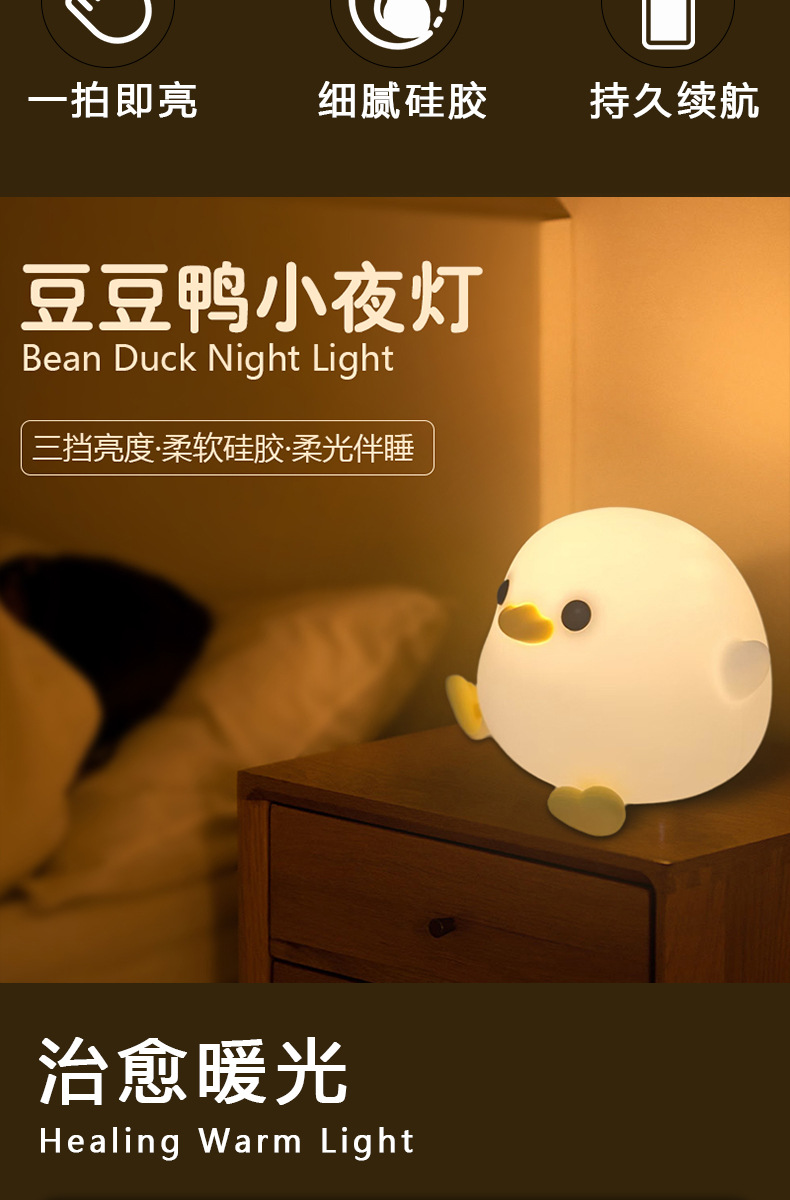 小夜灯网红爆款拍拍灯豆豆鸭硅胶床头灯伴睡氛围灯家用高级感台灯