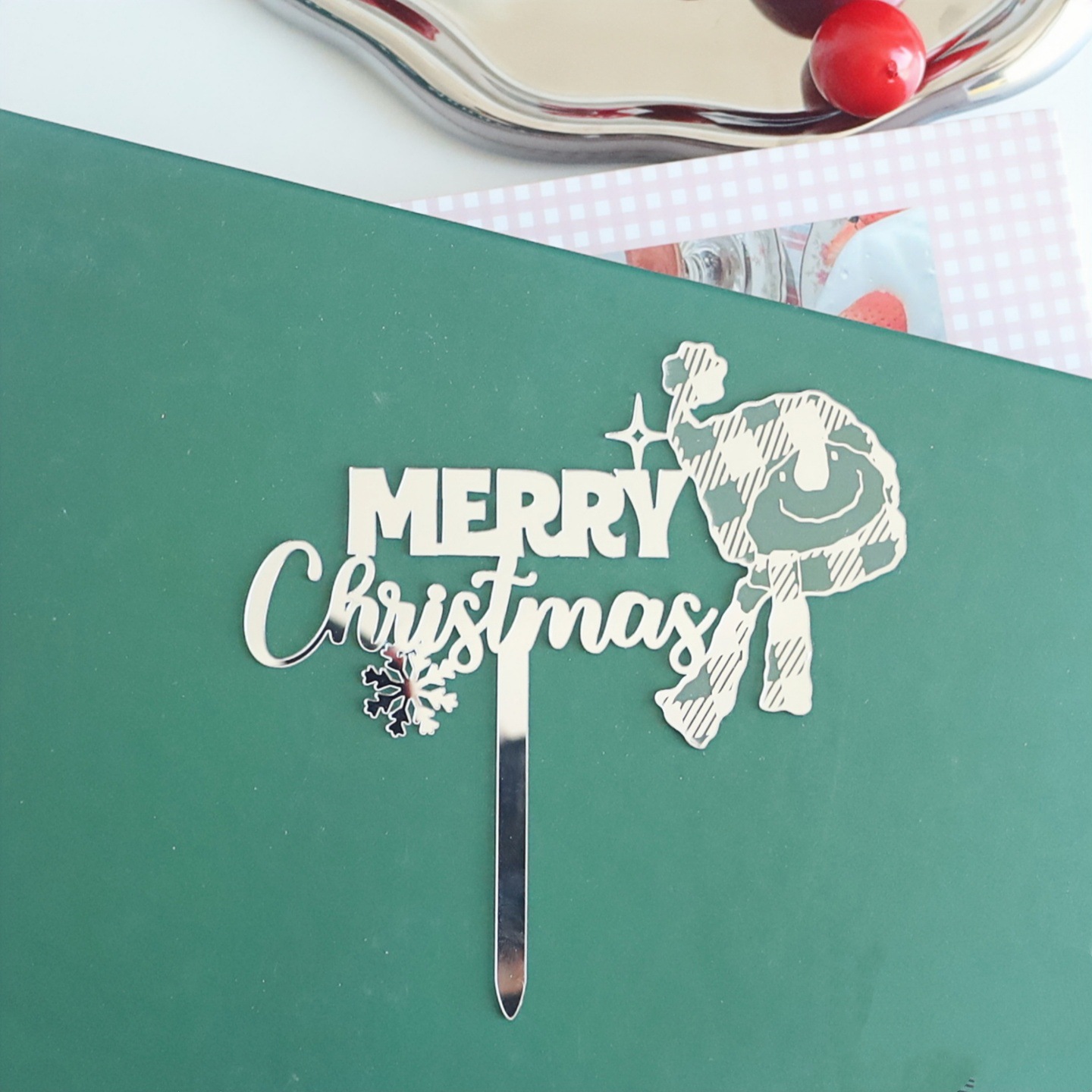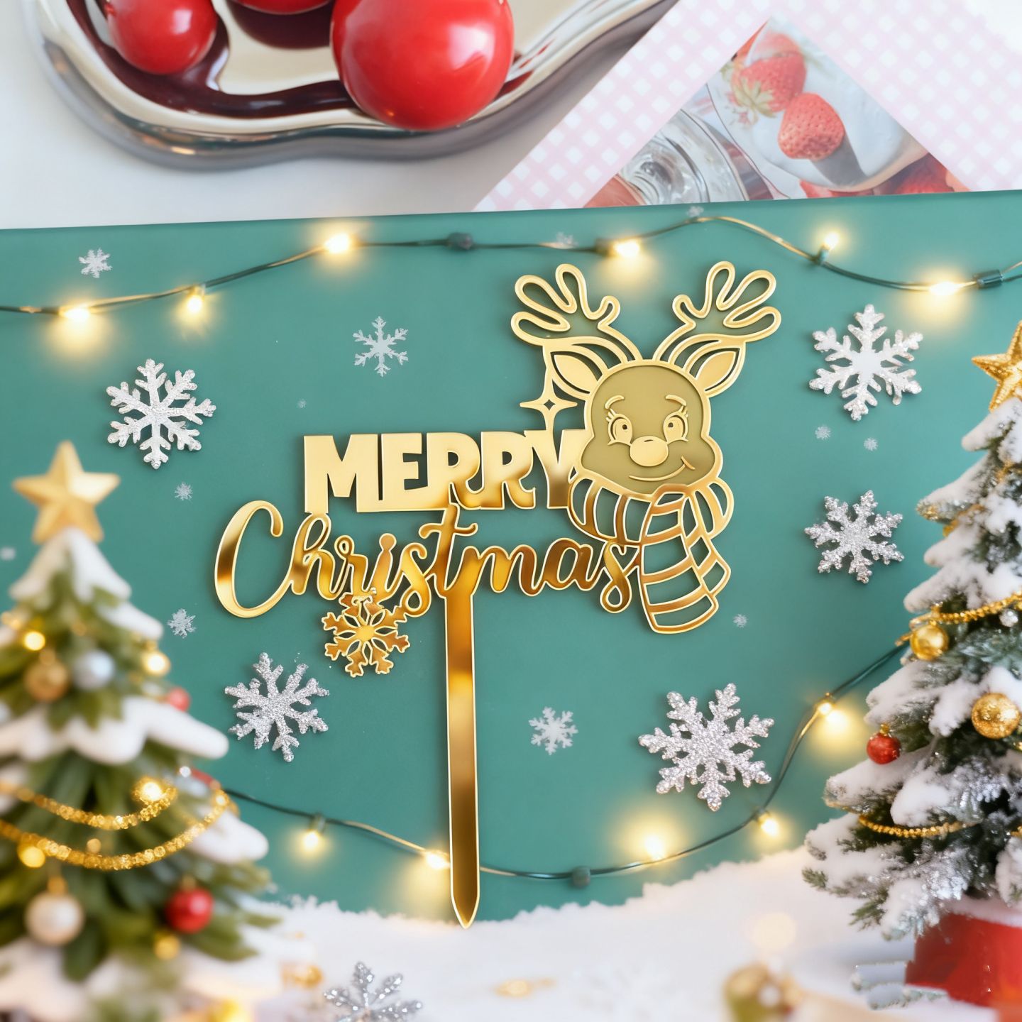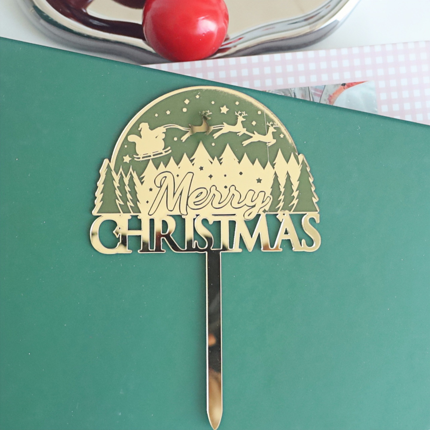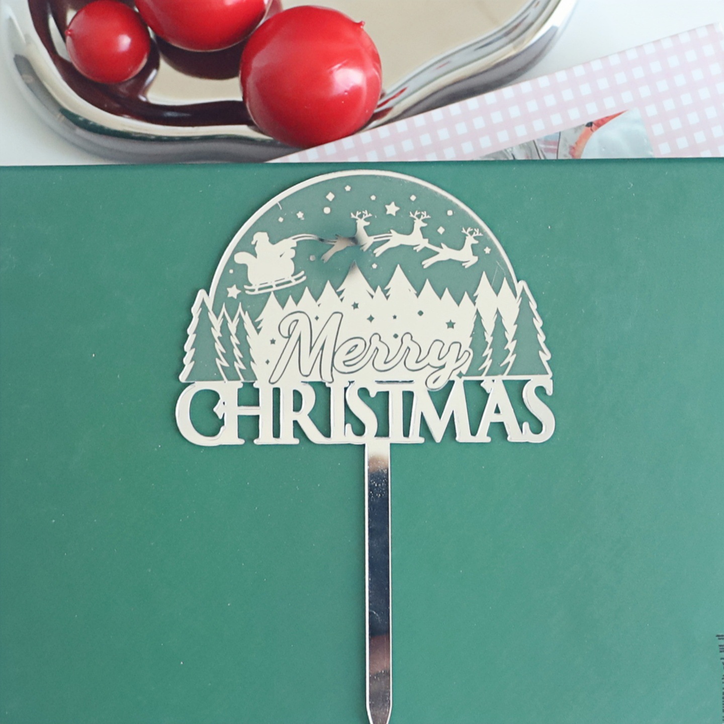 版权跨境ins风彩印圣诞快乐蛋糕插件圣诞亚克力蛋糕装饰派对用品