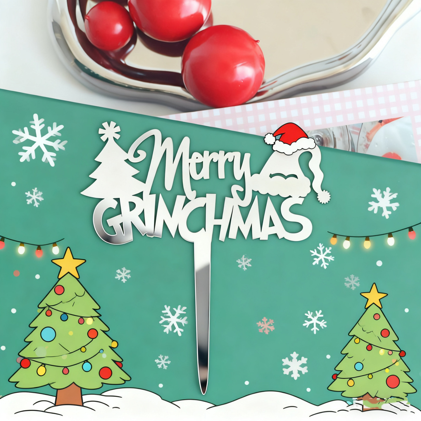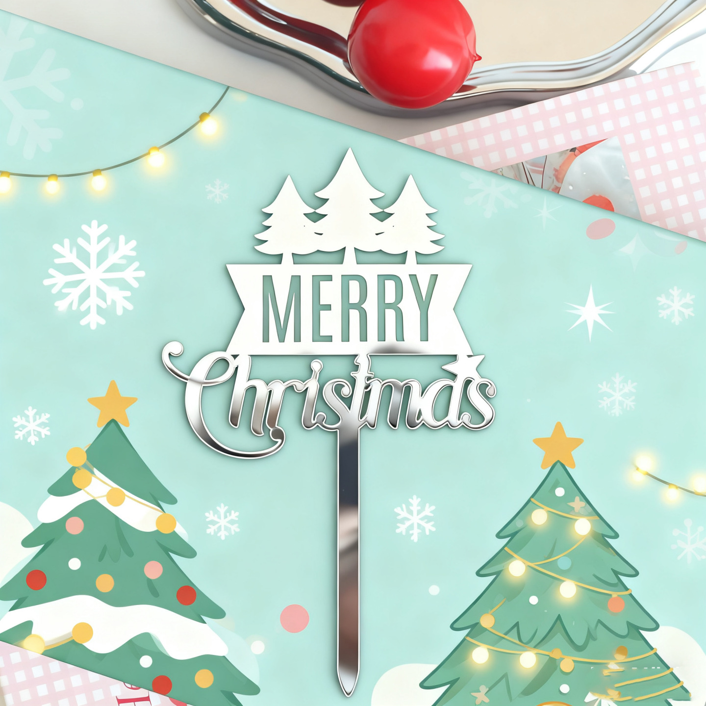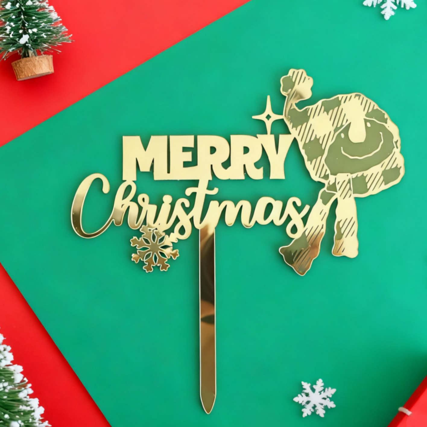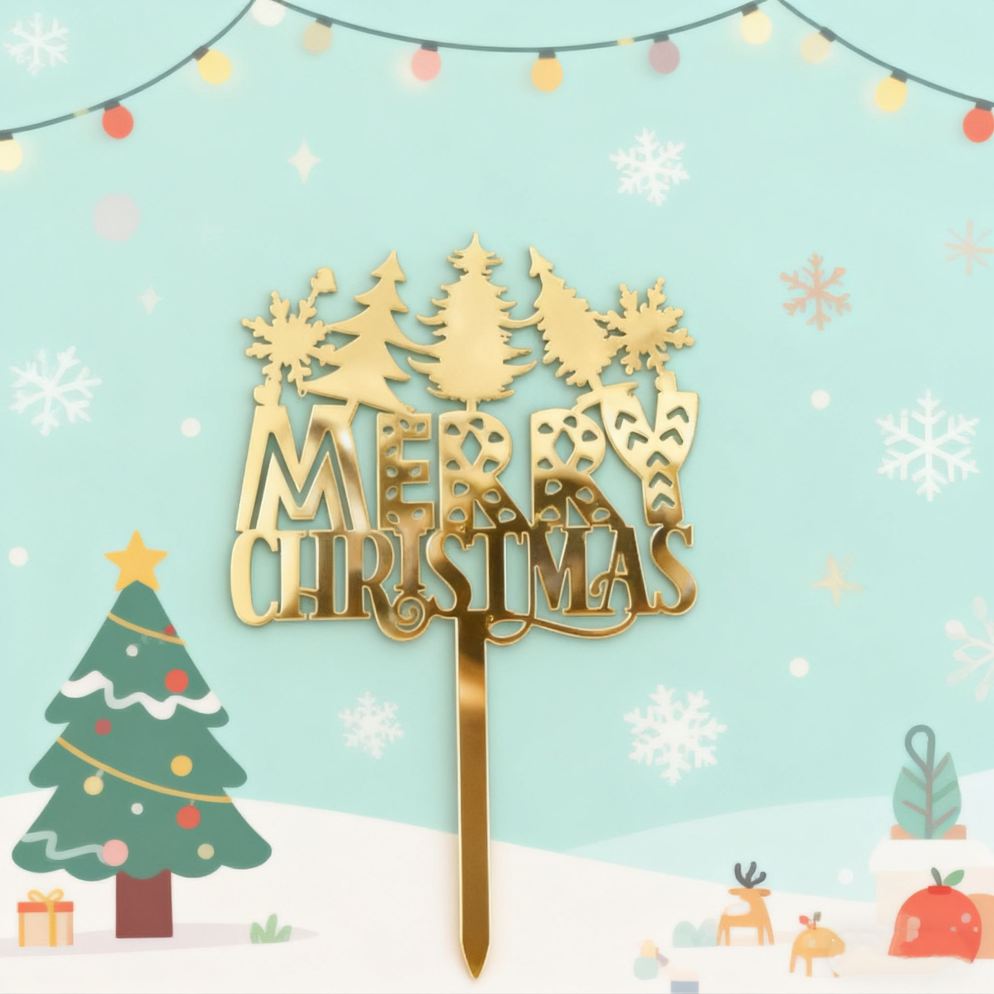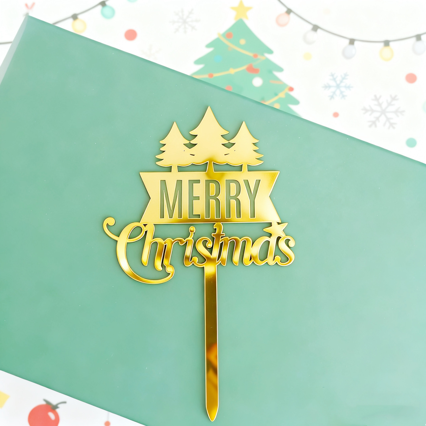 版权跨境ins风彩印圣诞快乐蛋糕插件圣诞亚克力蛋糕装饰派对用品