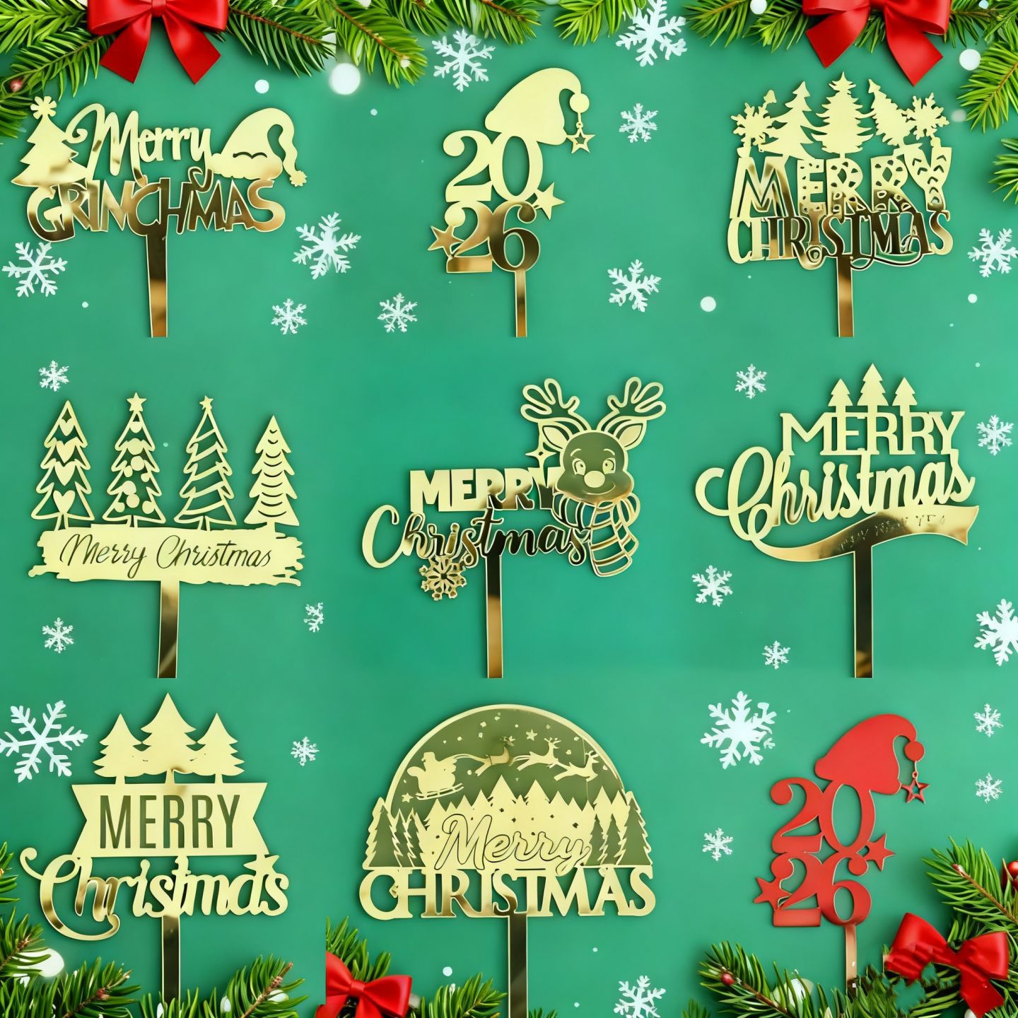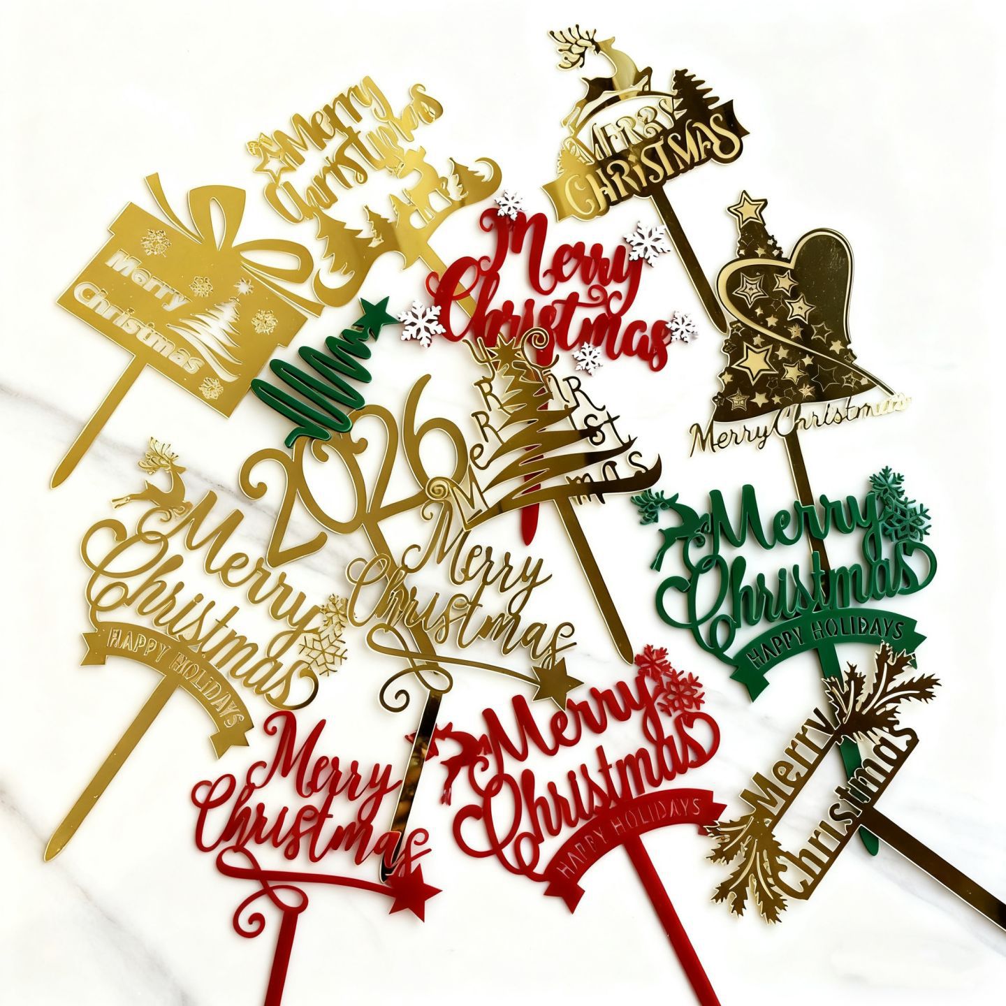 インスタ風2026アクリルケーキデコレーション クリスマス 大晦日 新年パーティー ケーキデコレーション ケーキインサート