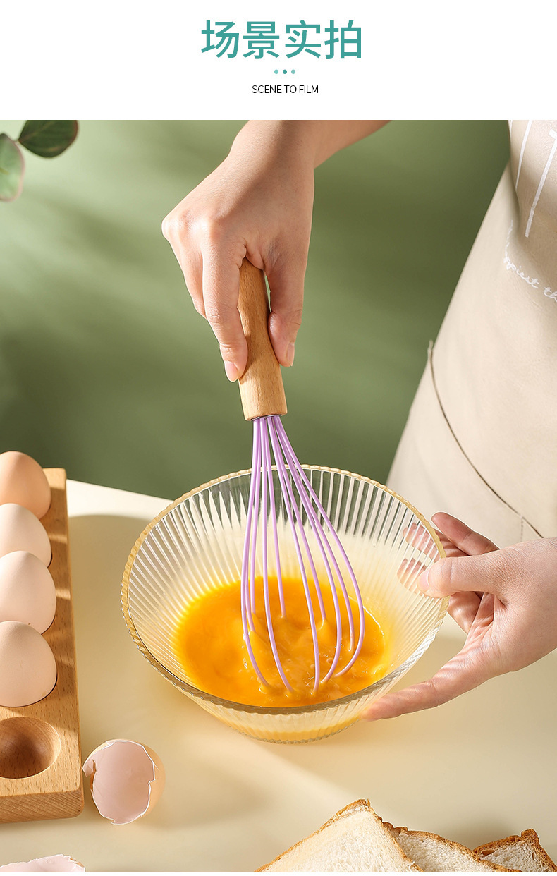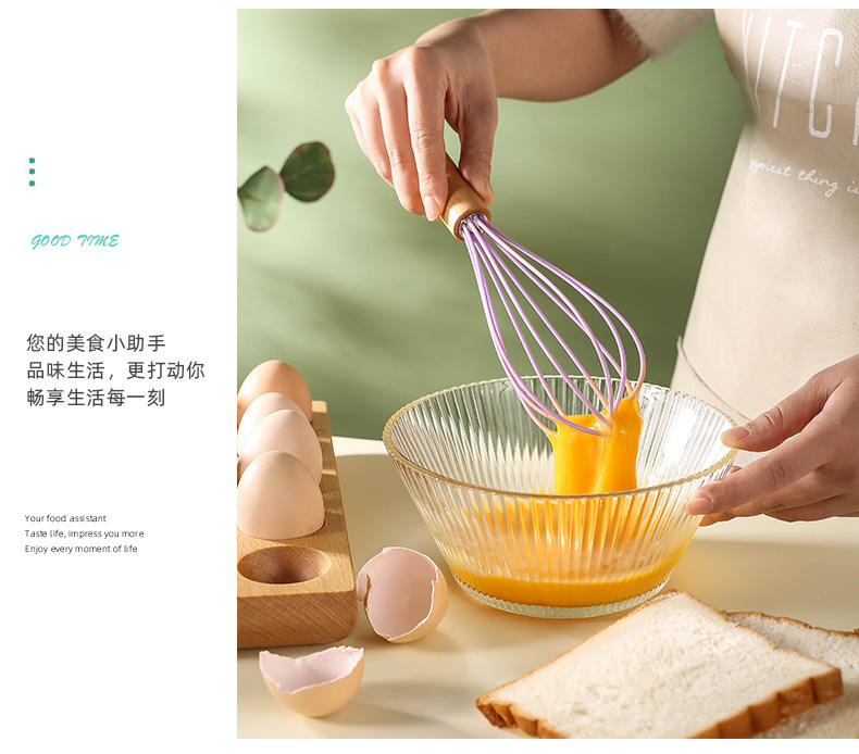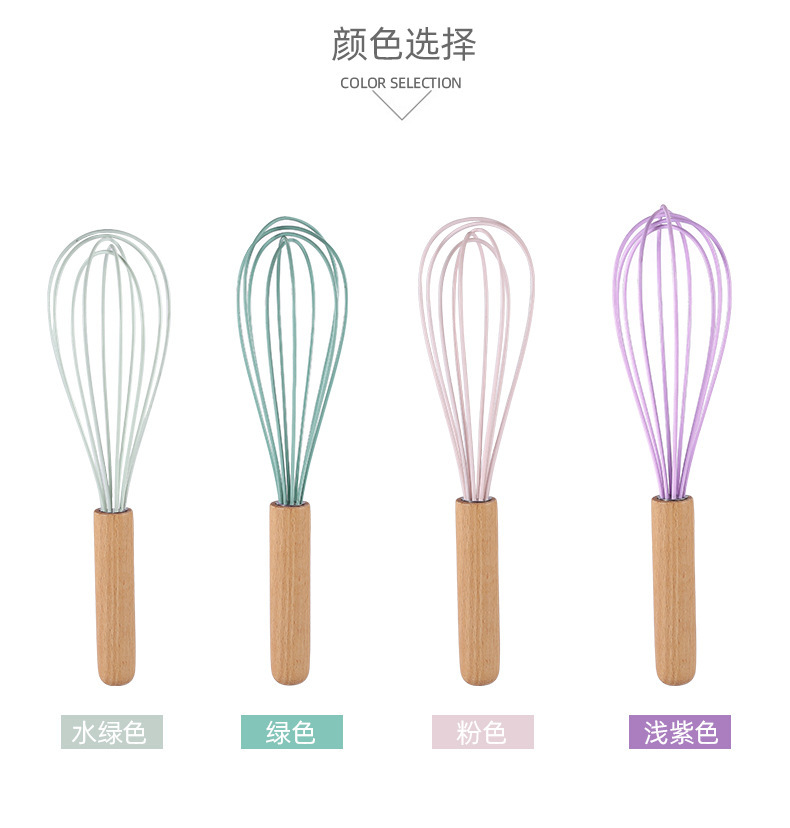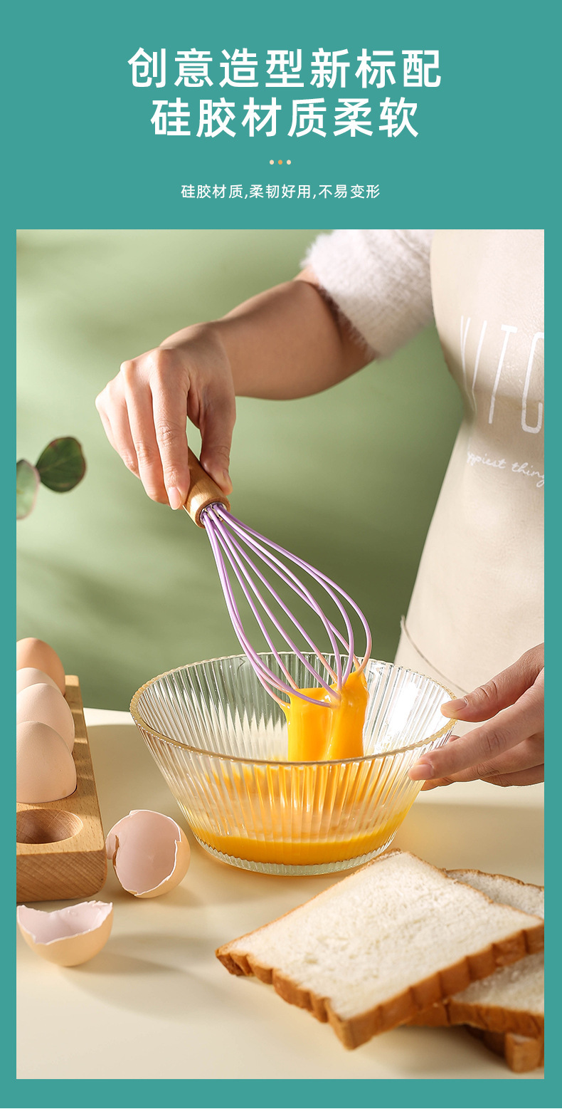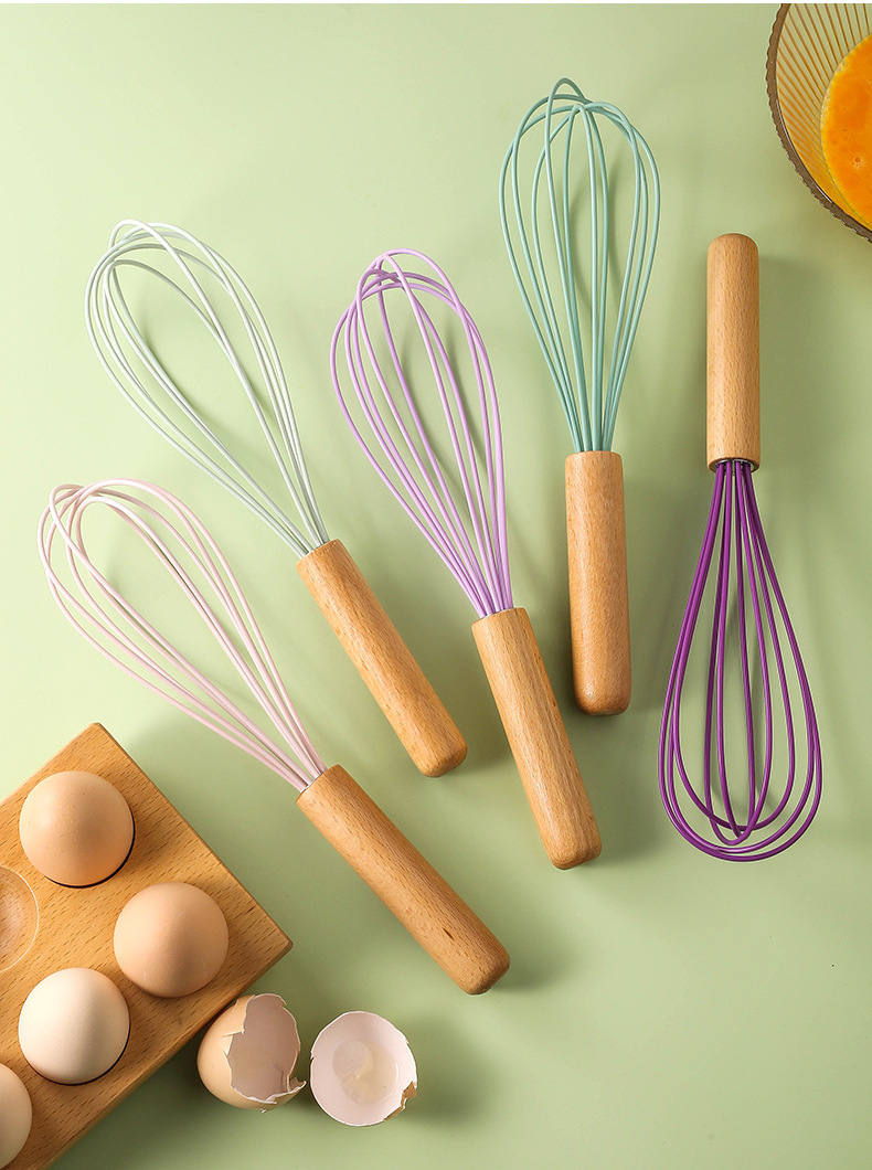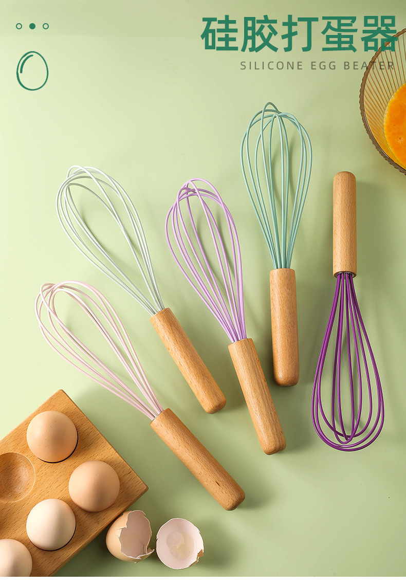 木柄彩色手持硅胶打蛋器手动液体搅拌棍奶油打发器厨房家用工具