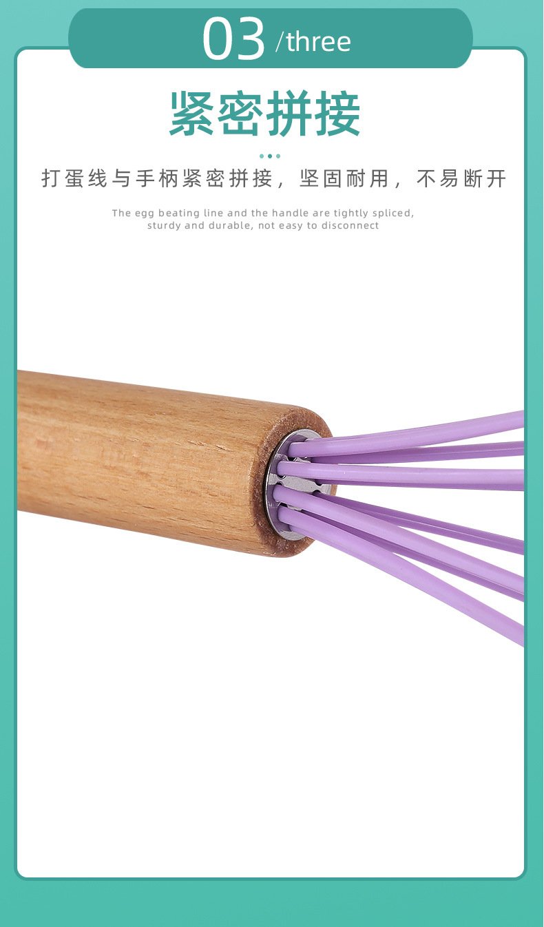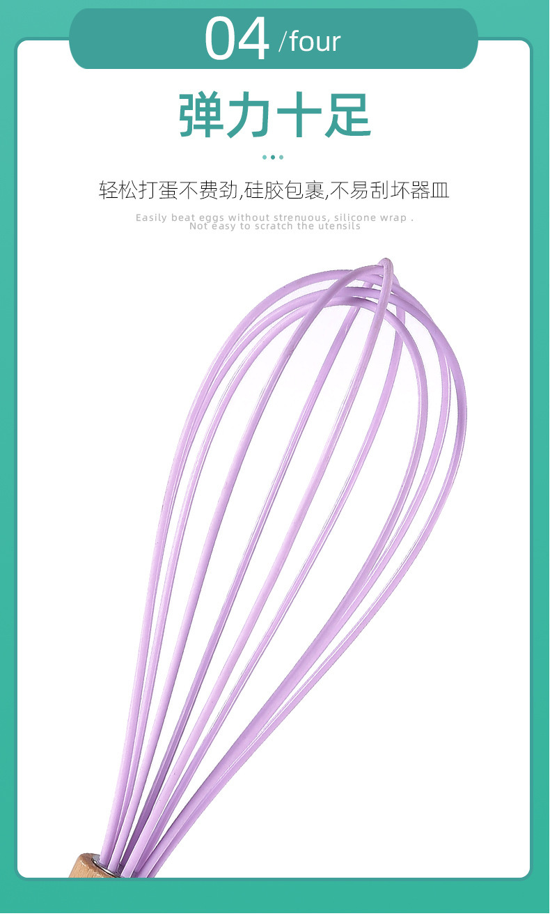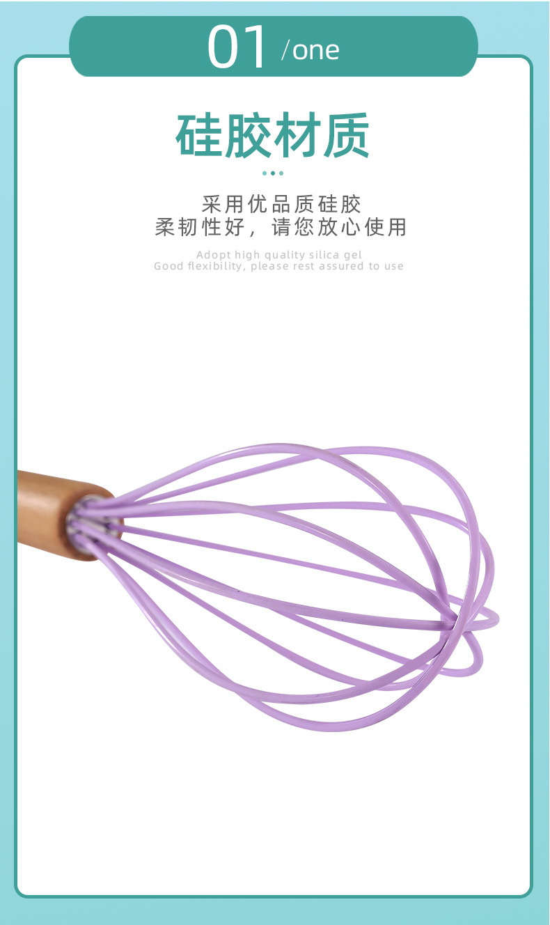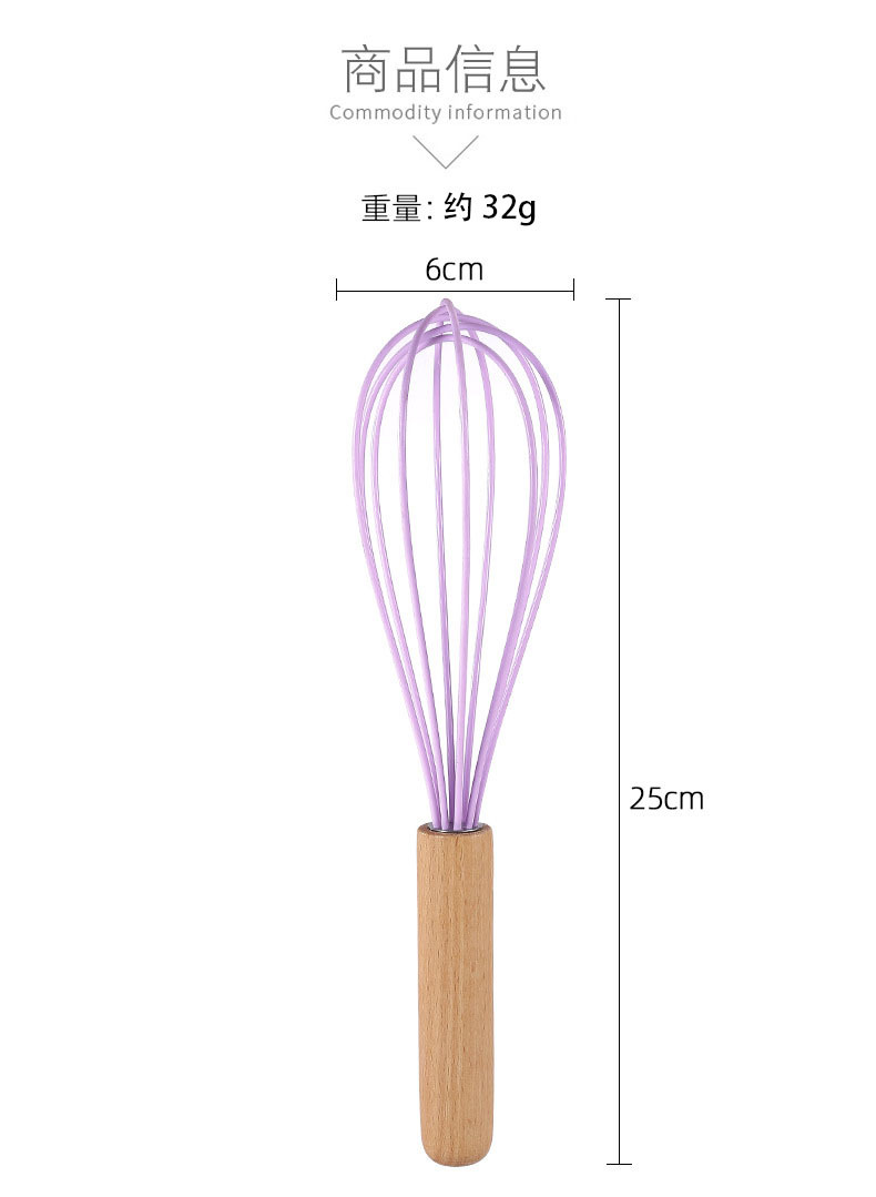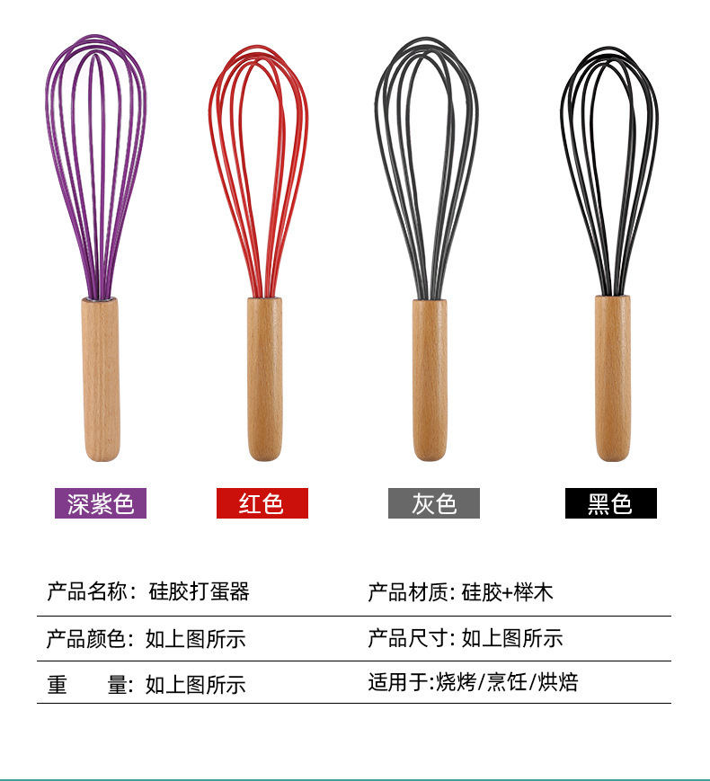 木柄彩色手持硅胶打蛋器手动液体搅拌棍奶油打发器厨房家用工具