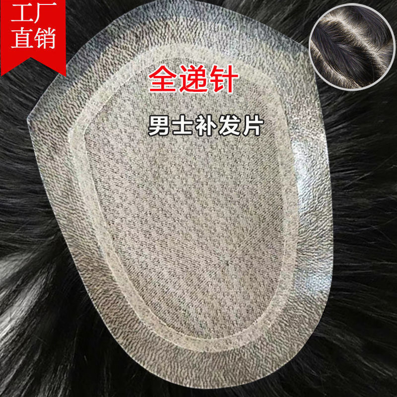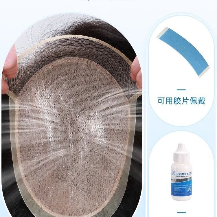 瑞士网双递针男士假发高端轻薄透气手织钩织前额蕾丝真人发补发块