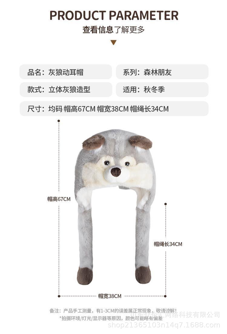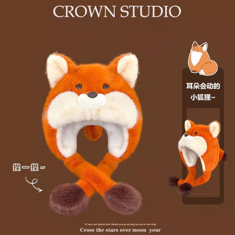 2025爆款疯狂动物城尼克狐毛绒玩偶帽 冬季加厚加绒耳朵会动护耳