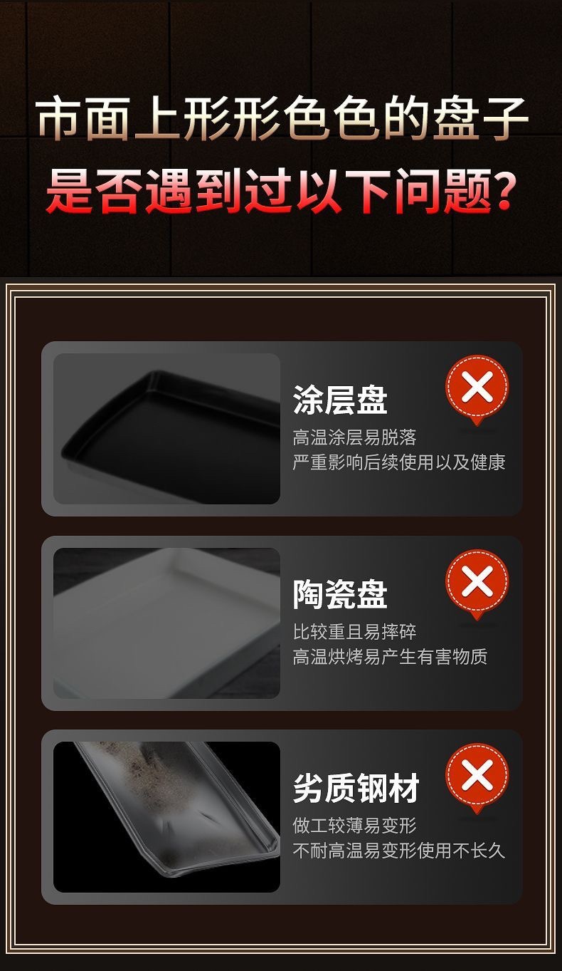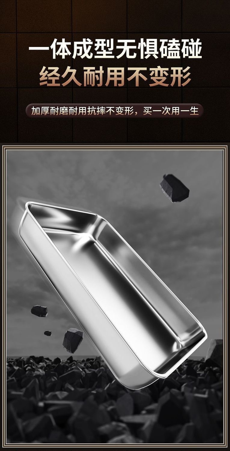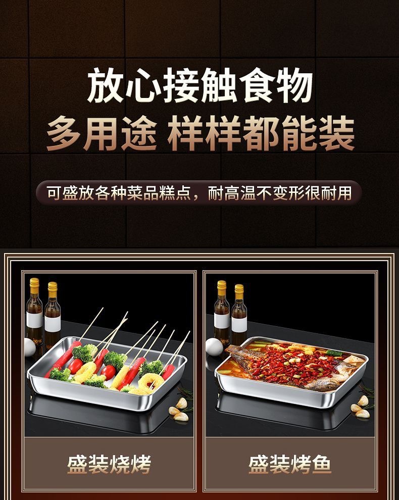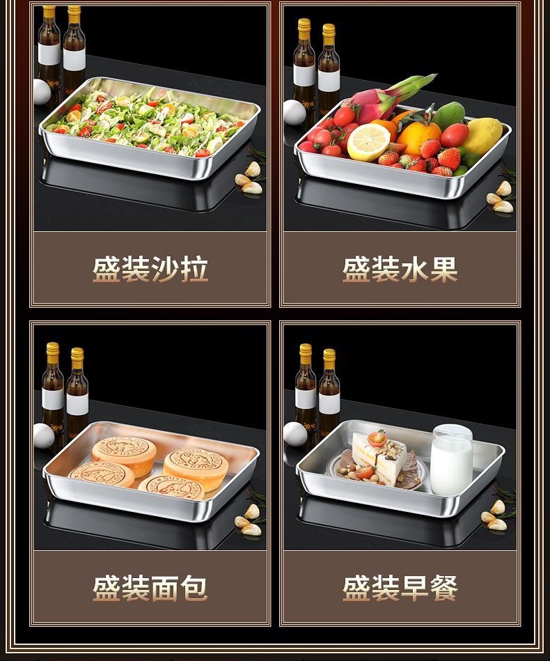 加厚316 不锈钢食品级方盘凉菜盘托盘蒸糕盘商用多用盘纯平底方盆