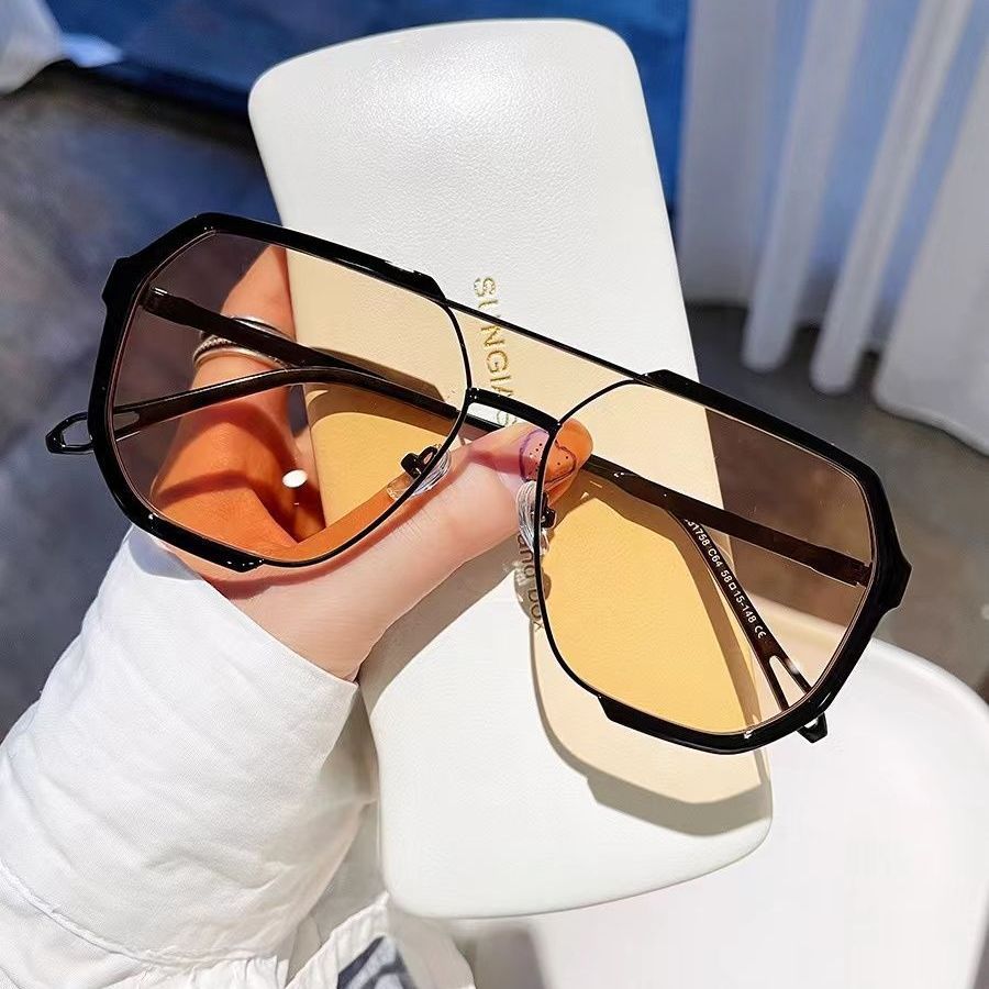 25新型ネットセレブ風フレームレスUVカットトレンドシェード気質大フレーム万能サングラス女性用メガネ