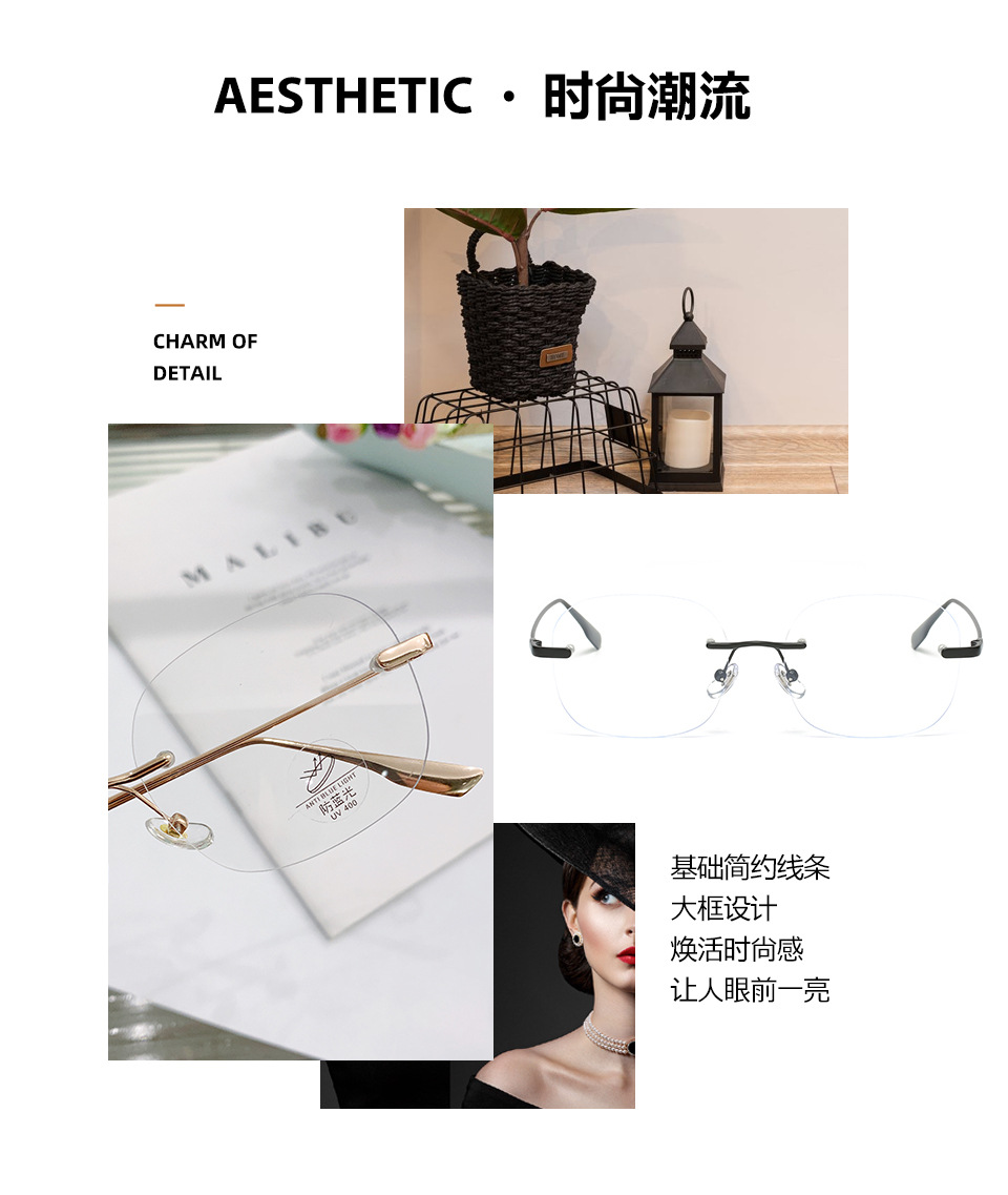 私を眩しく見せる、徐燕と同じスタイルの金線メガネ。度付き近視メガネフレームとしても使用可能。ネットで話題のノーメイクフレームレスメガネ(女性用)