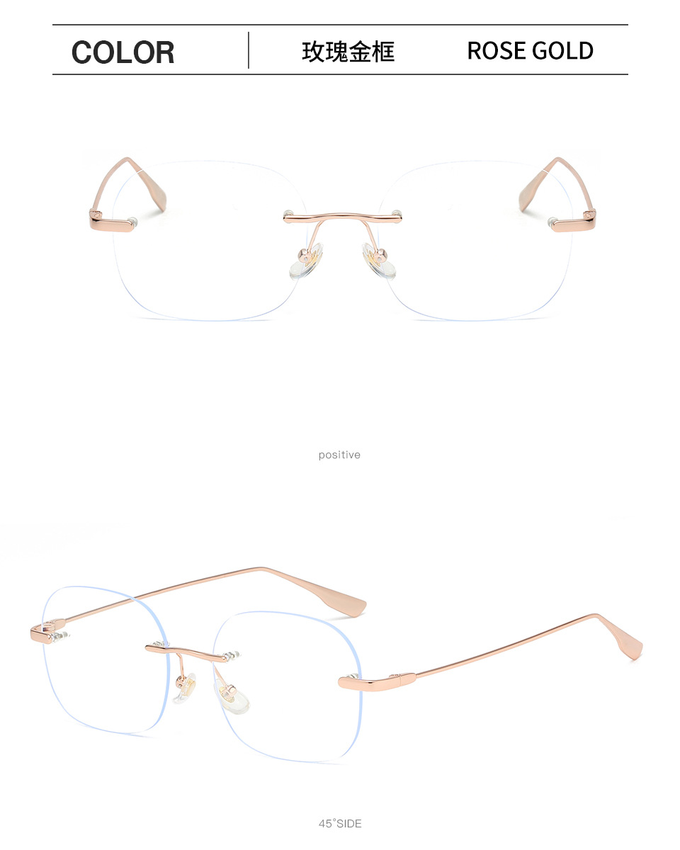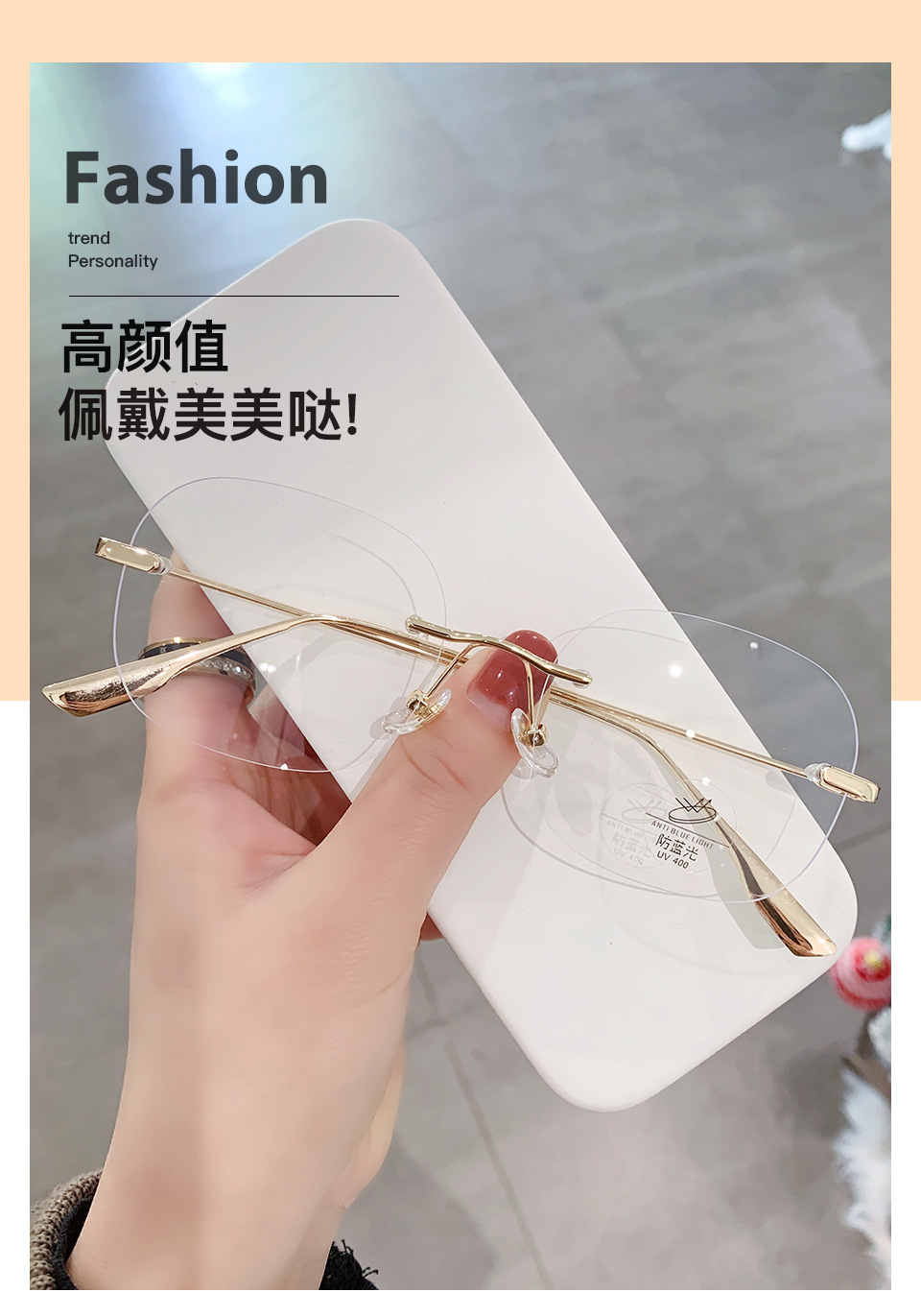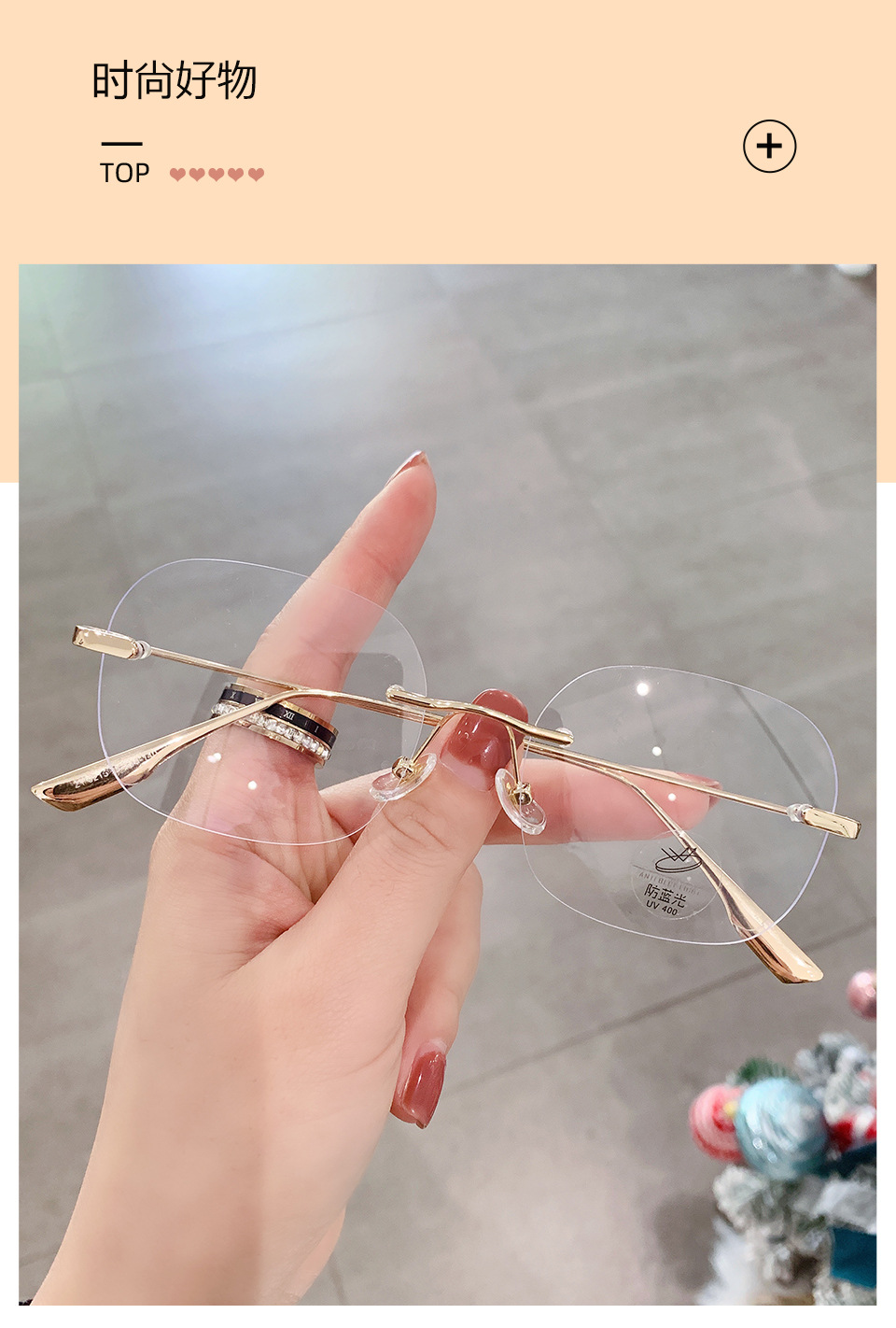 ネット赤insブルーレイ防止平光鏡女金属無枠多角形ファッション眼鏡フレーム近視眼鏡フレーム