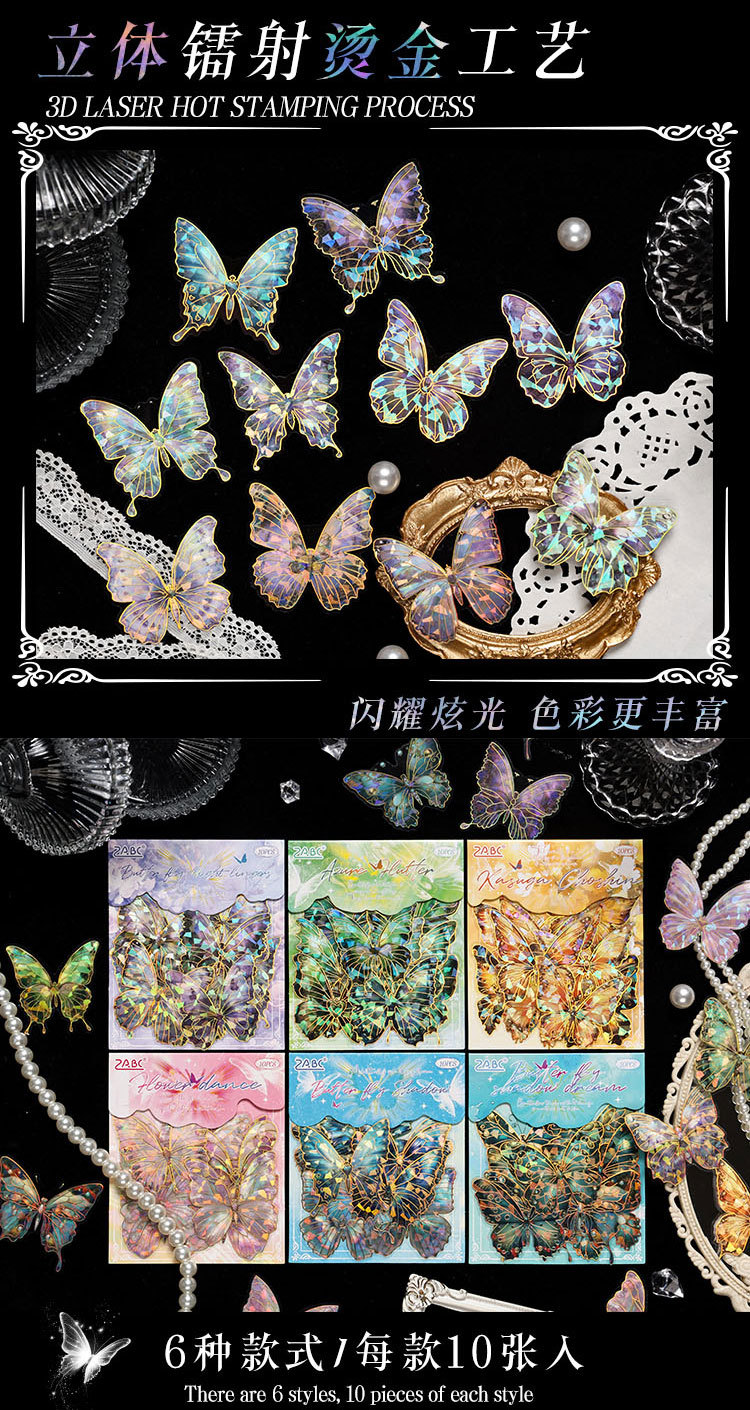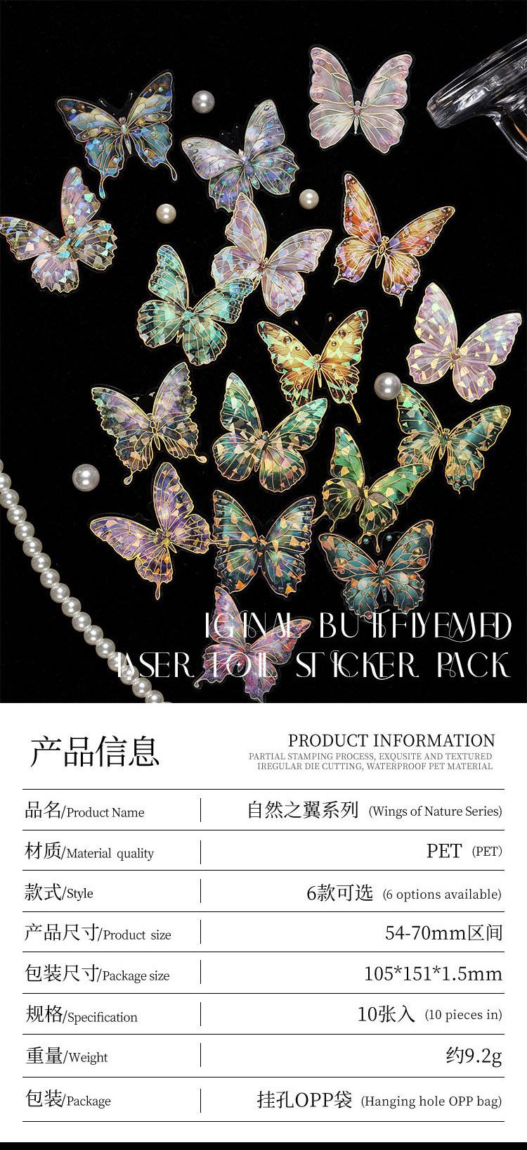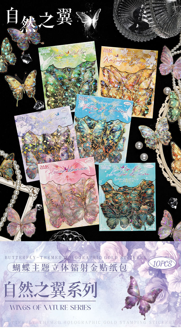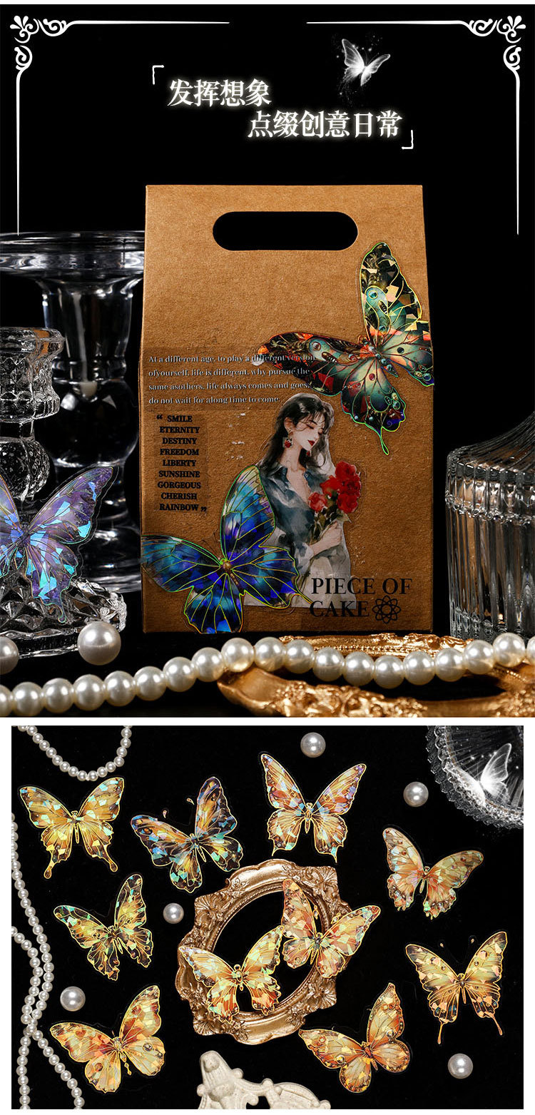 悦真自然之翼立体烫金手帐贴纸 跨境手账贴纸包复古diy手帐素材