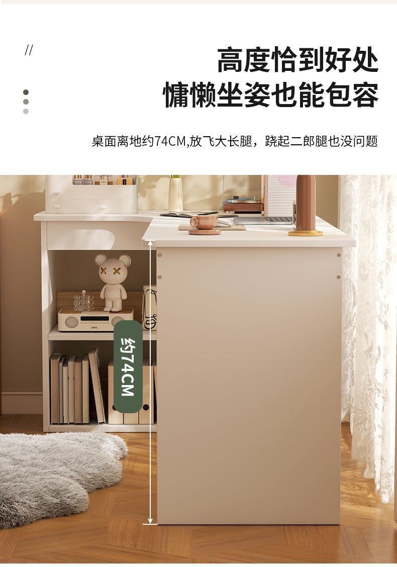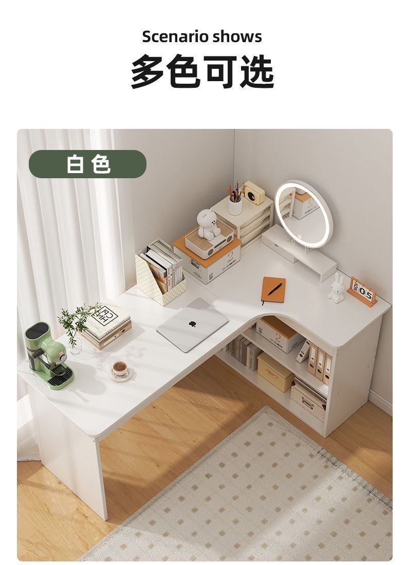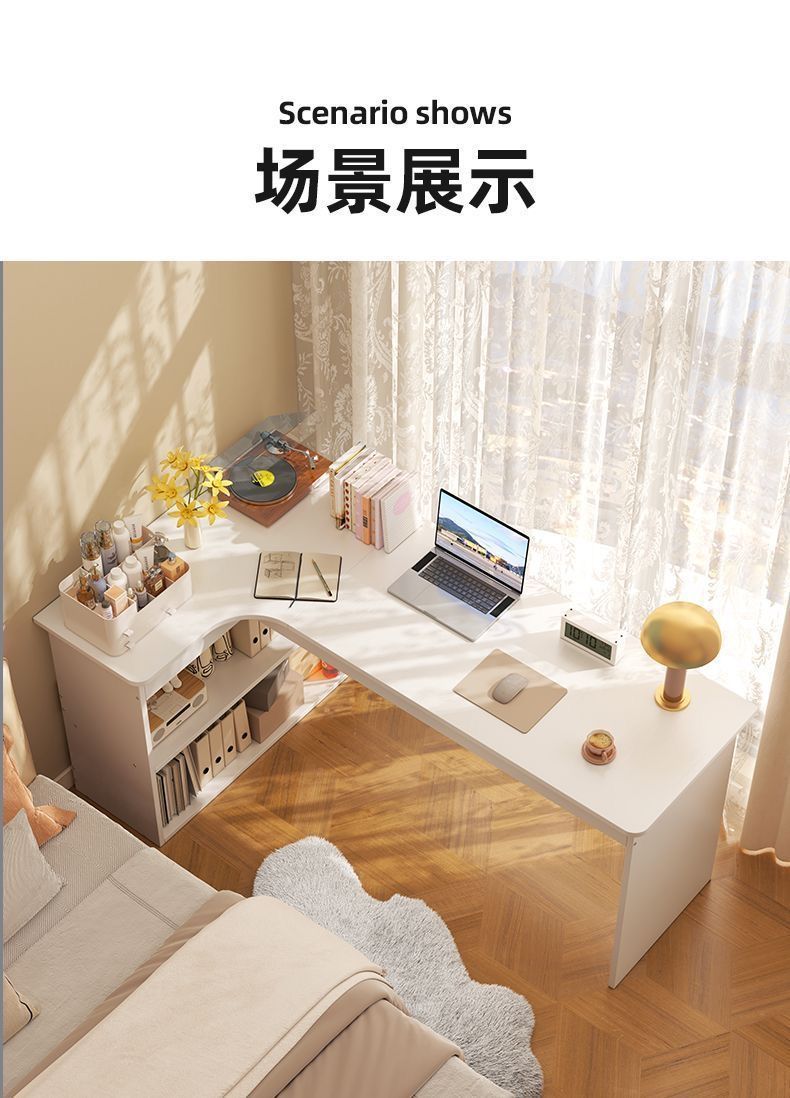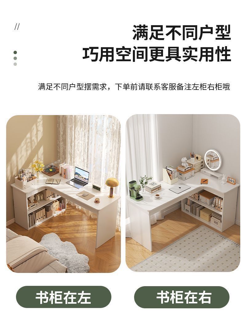 卧室转角书桌书柜一体床边l型实木电脑桌书架组合 拐角式桌子靠窗