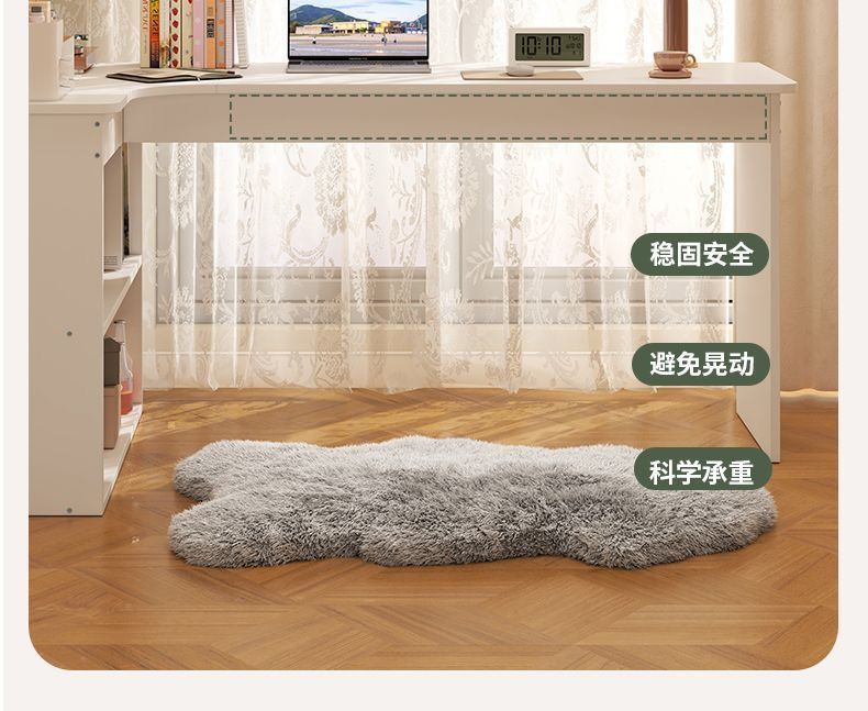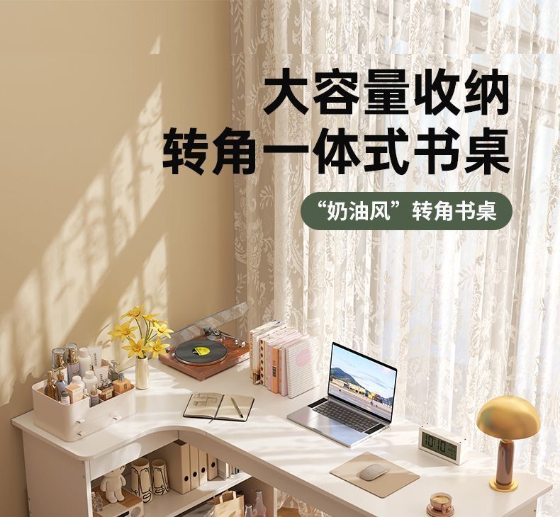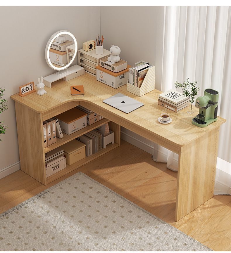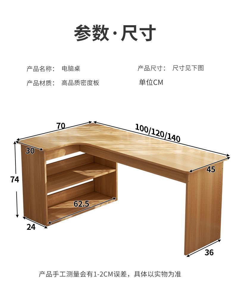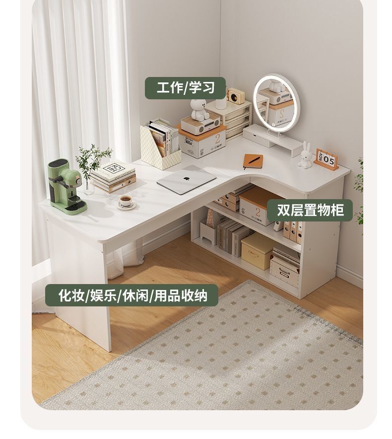 卧室转角书桌书柜一体床边l型实木电脑桌书架组合 拐角式桌子靠窗