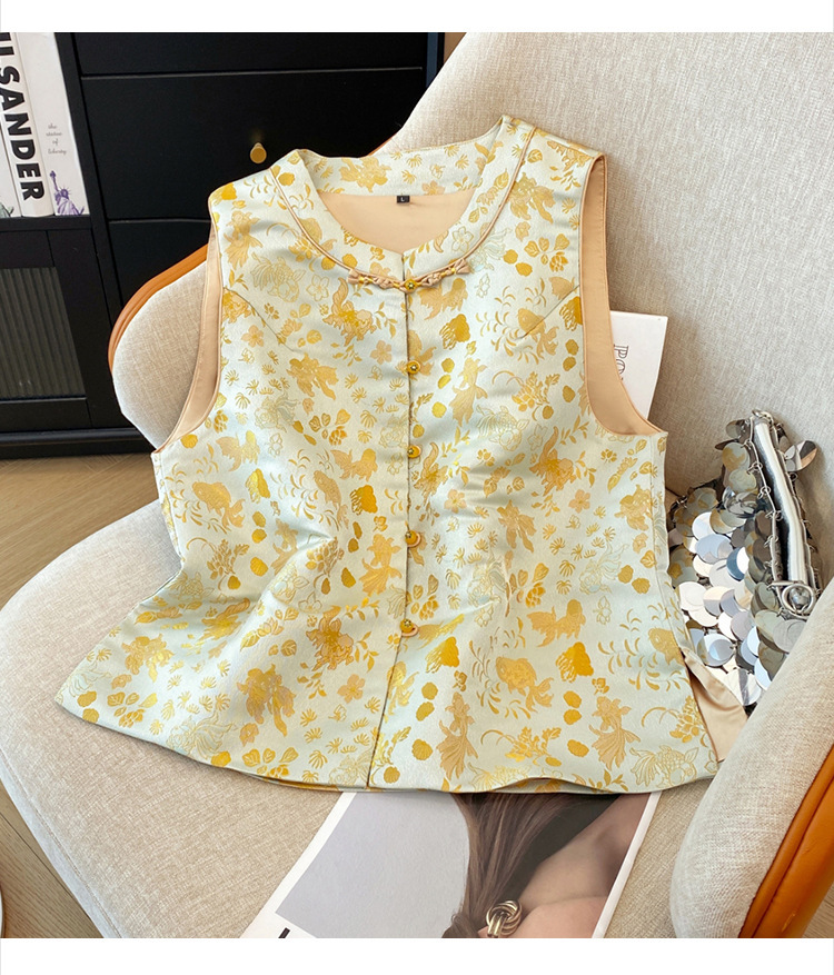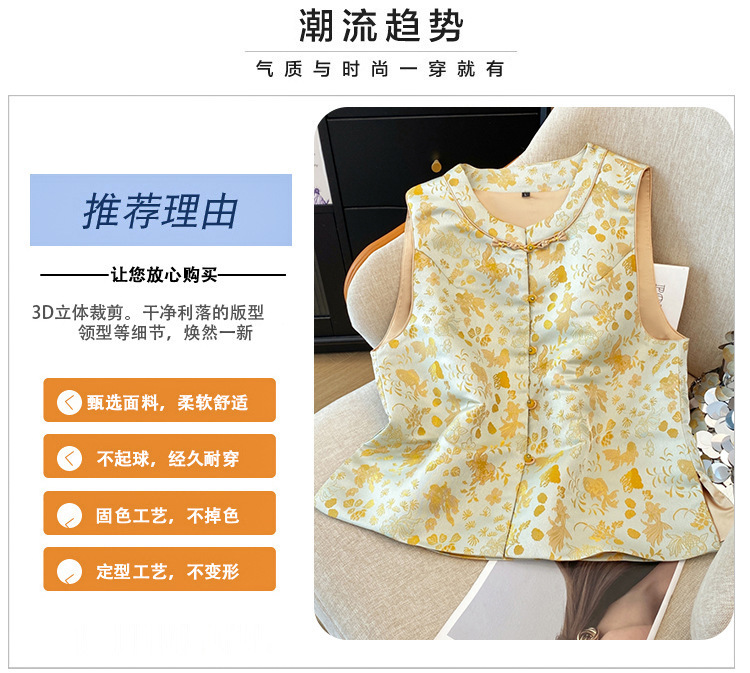 品质保证减龄新中式高端宋锦马甲背心春秋新款轻国风唐装上衣马夹