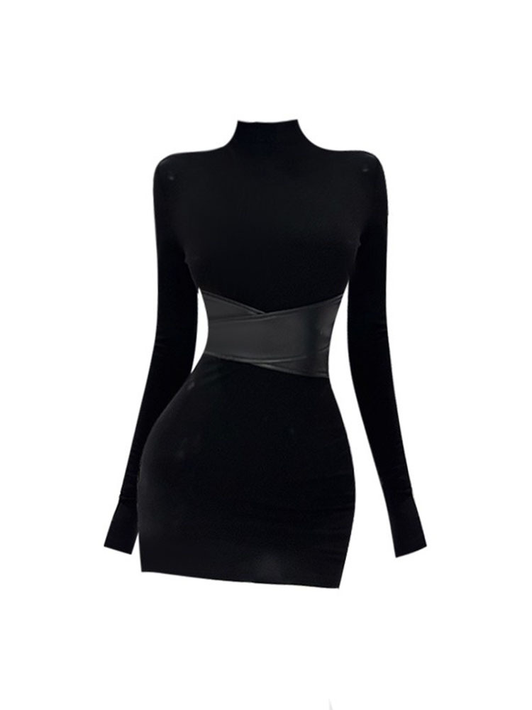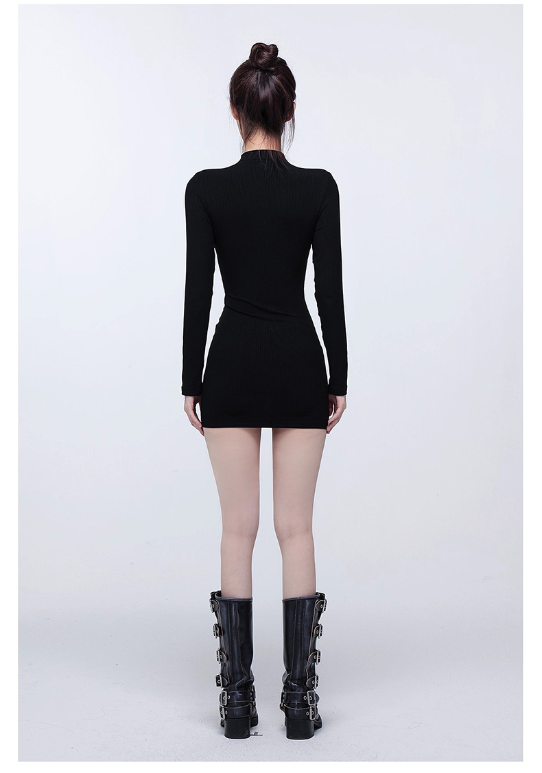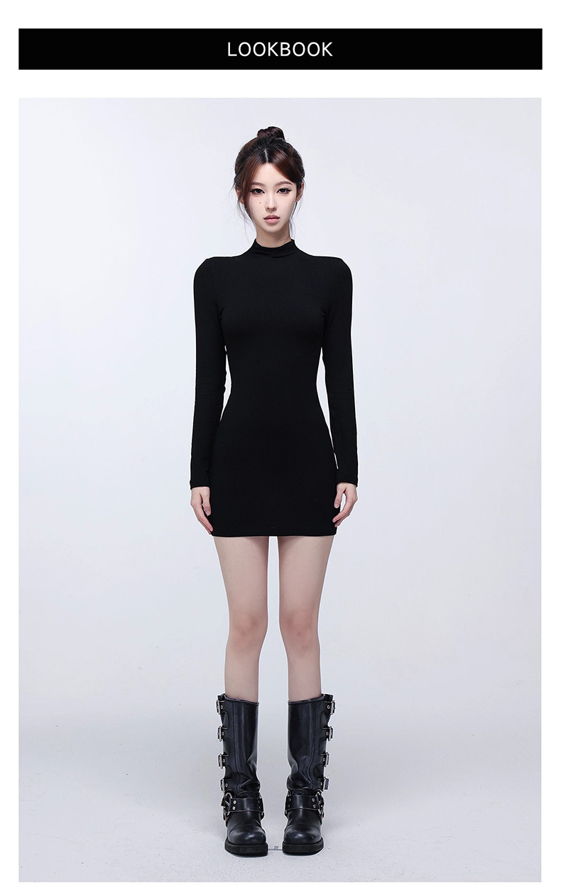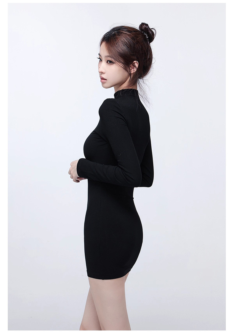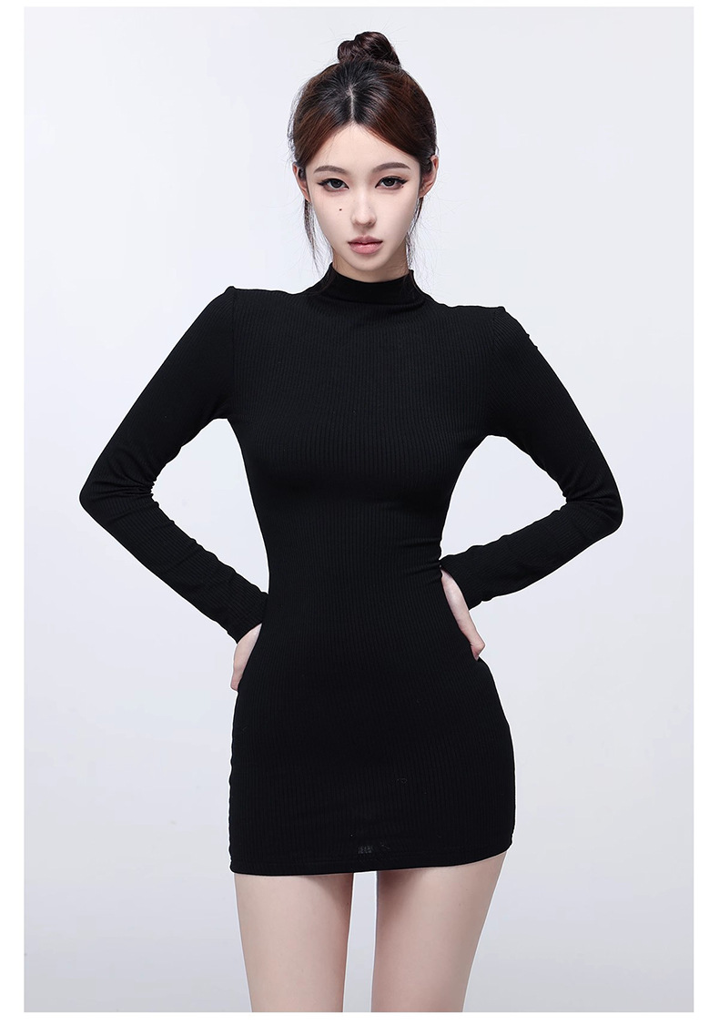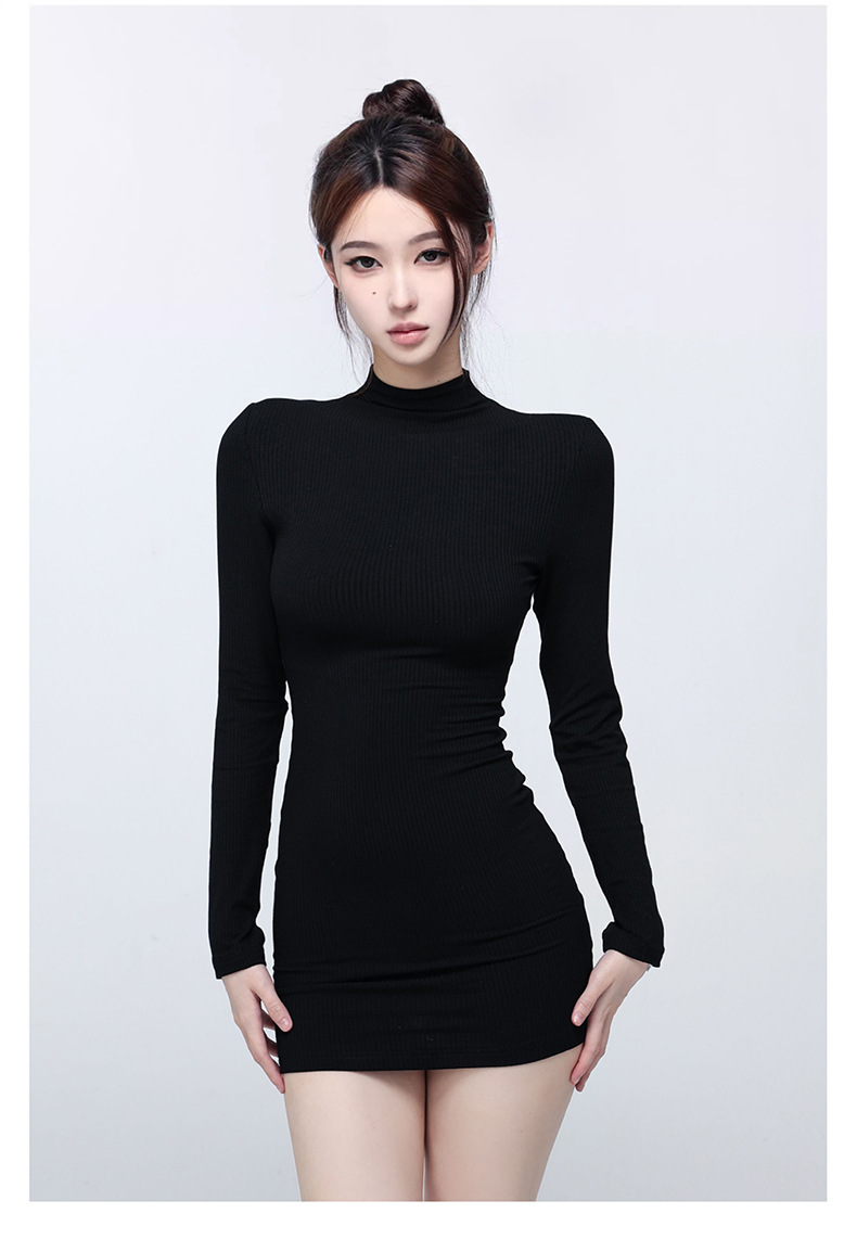 ギャルの半高襟の長袖のワンピースの女性の秋冬の修身はヒップのスカートの中でベースのスカートの純粋な欲風の短いスカートを掛けます。