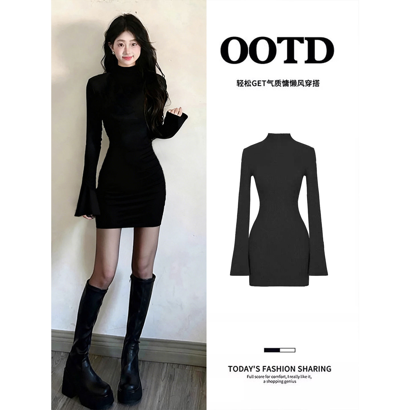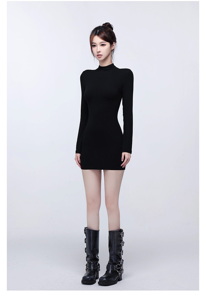 法式黑色高领打底内搭连衣裙子女2025秋冬季气质显瘦收腰包臀短裙