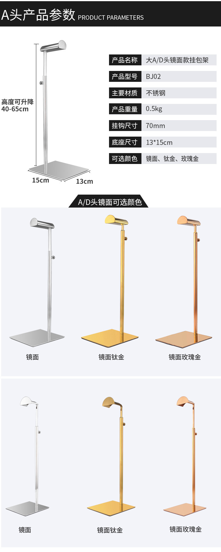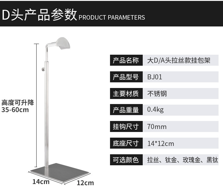 不锈钢包包展示架包店用包撑包架展示架商场可调节落地挂包展示架