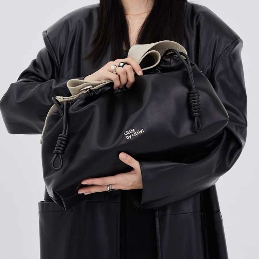 DirtySix/原创Littlebylittle宽肩带抽绳软方砖包休闲百搭斜跨包