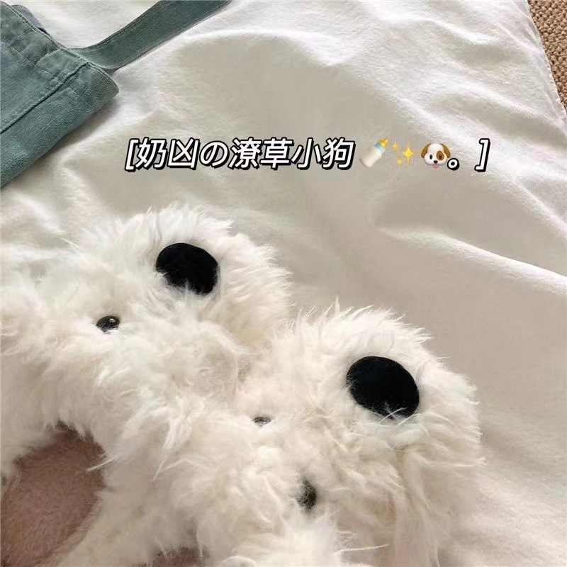 2025新款潦草小狗可爱女室内居家加绒保暖毛毛拖鞋潮批发一件代发