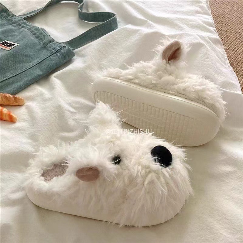 网红新款可爱小狗拖鞋冬季外穿防滑居家加绒室内保暖棉鞋毛毛