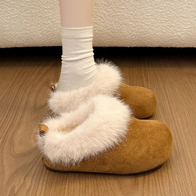 厚底增高毛毛拖鞋女外穿2025秋冬新款加绒雪地靴勃肯懒人包头棉拖