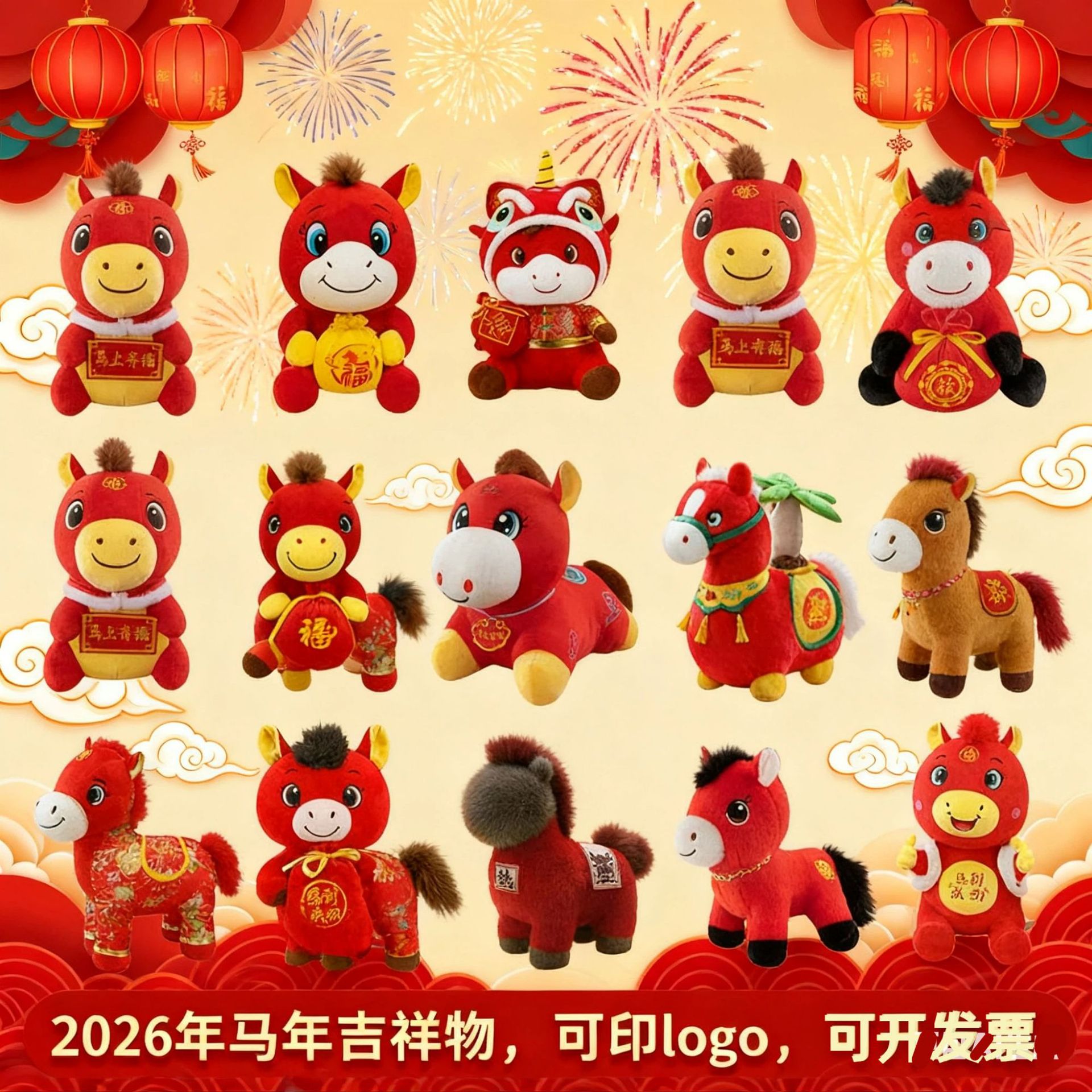 2026年馬年吉祥物8inchぬいぐるみおもちゃ年次総会ギフト人形おもちゃ馬のぬいぐるみ