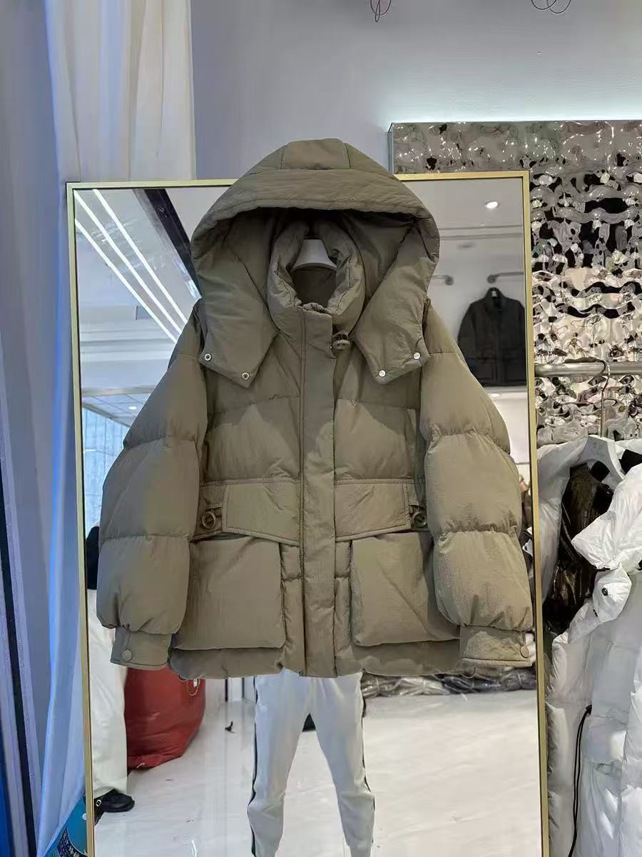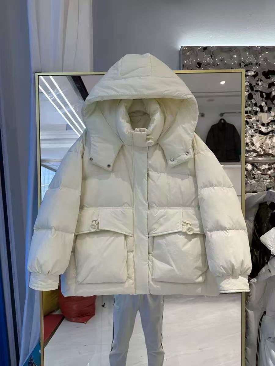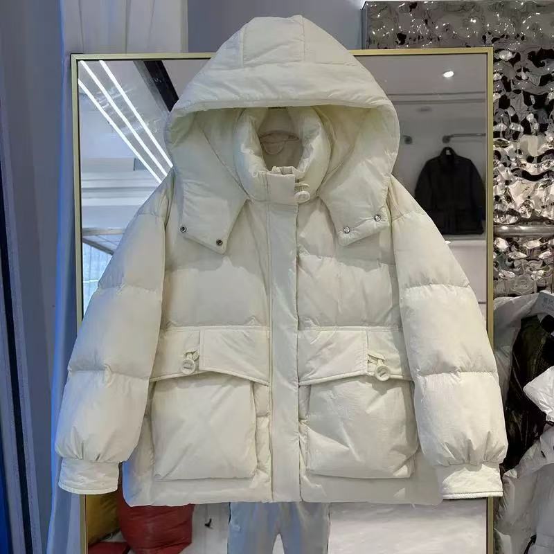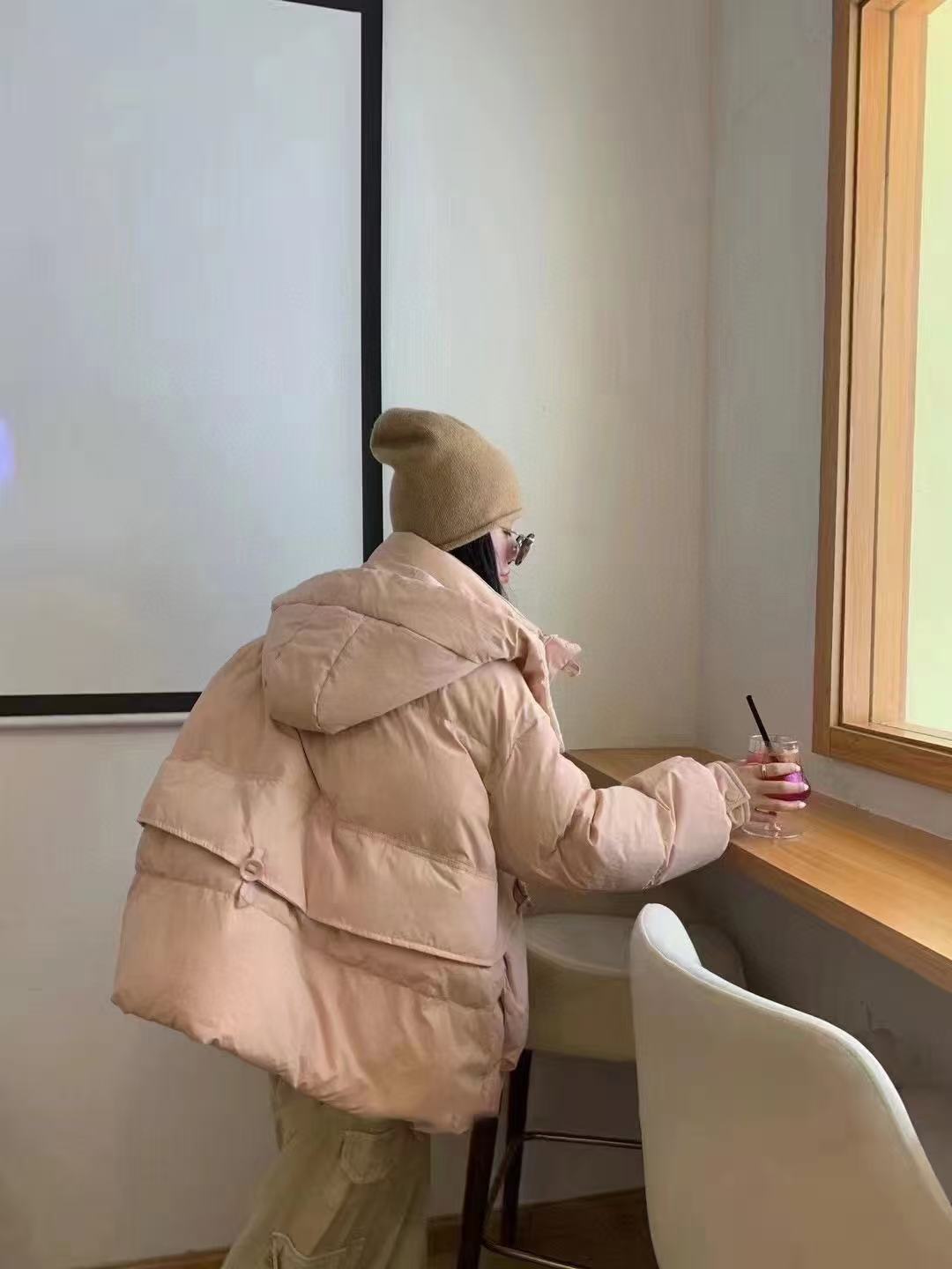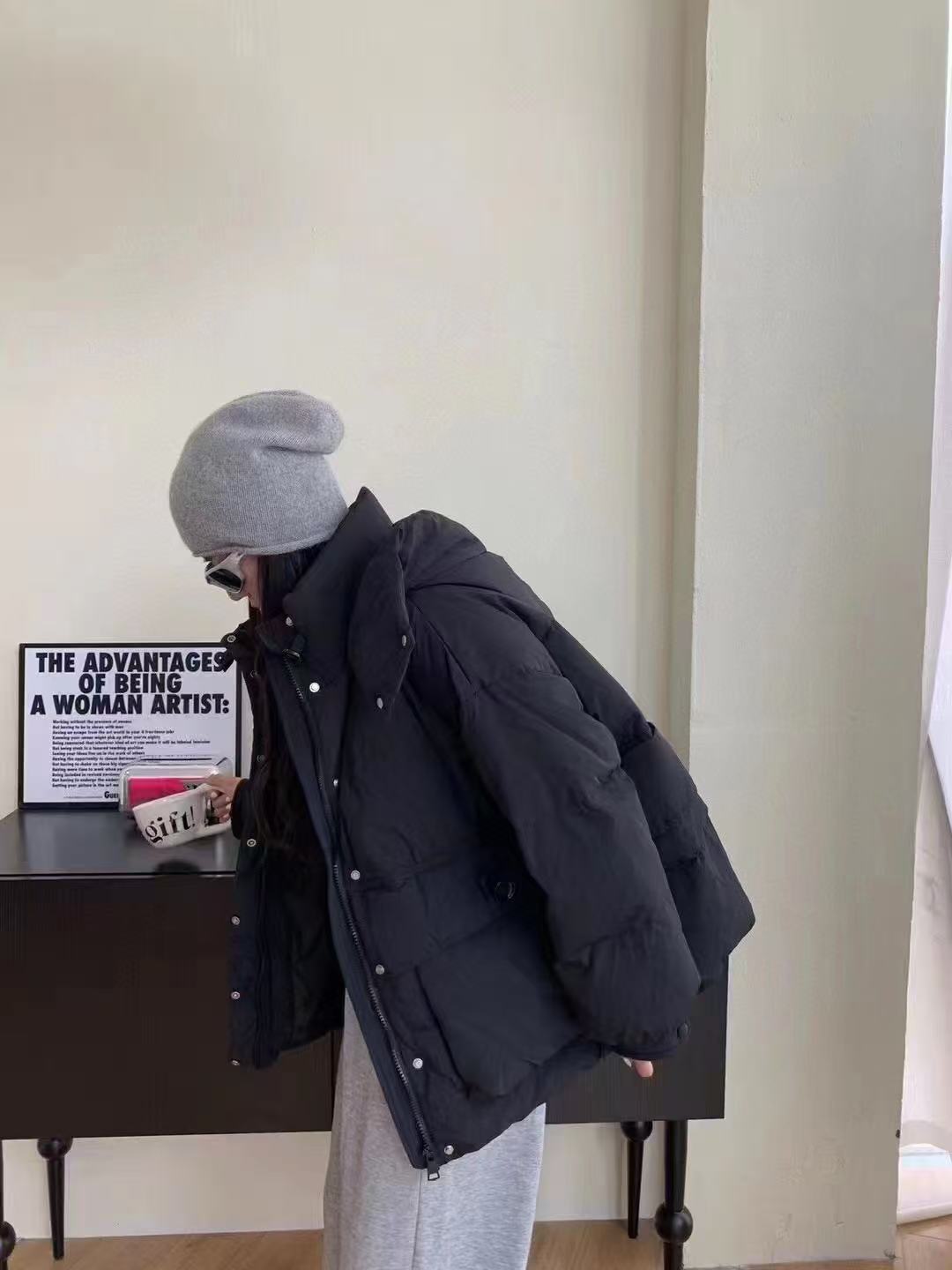 2025冬季新款泡芙连帽羽绒服女短款宽松轻盈白鸭绒面包服外套潮