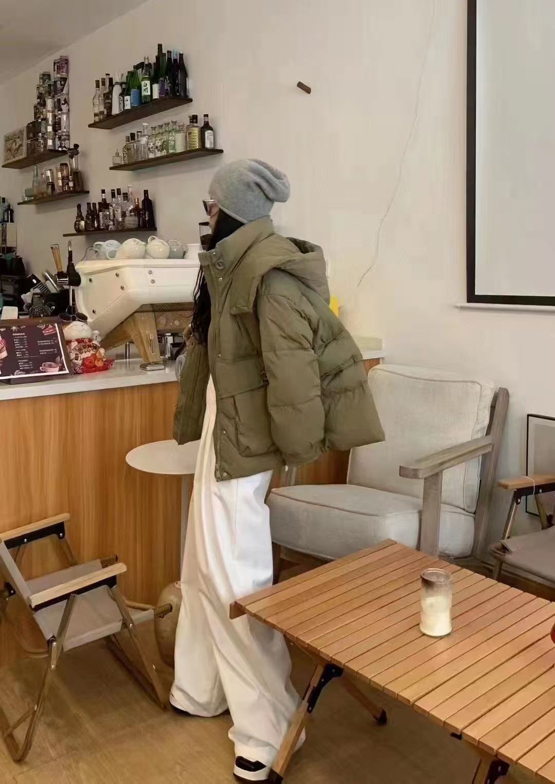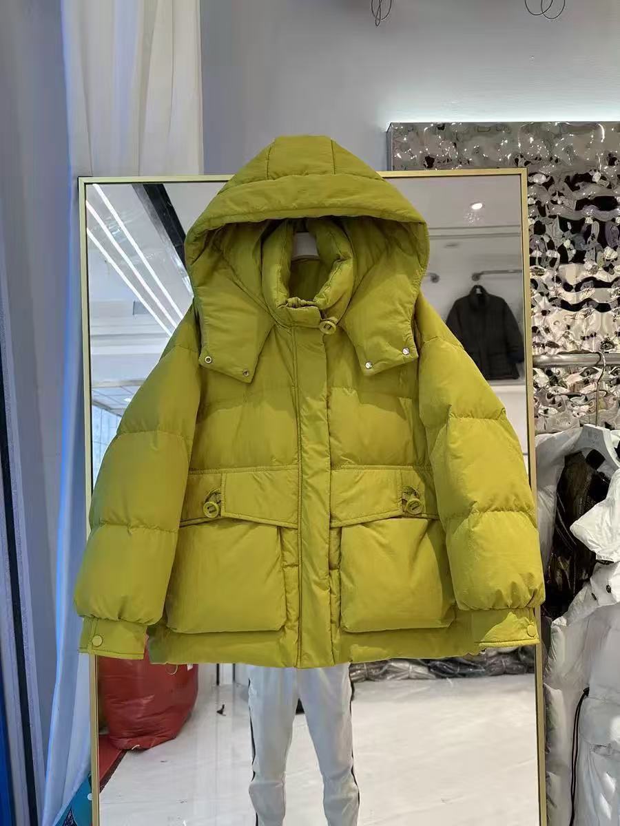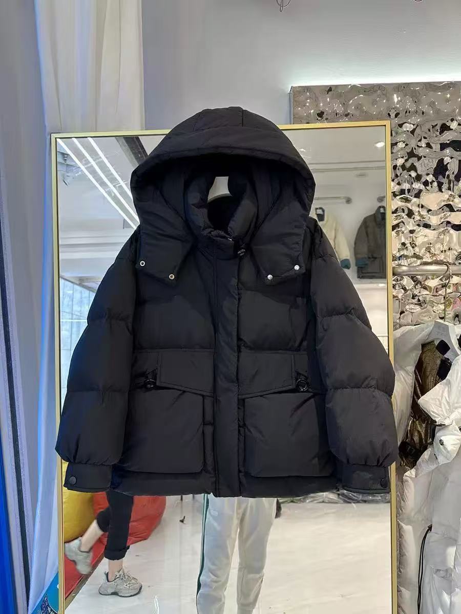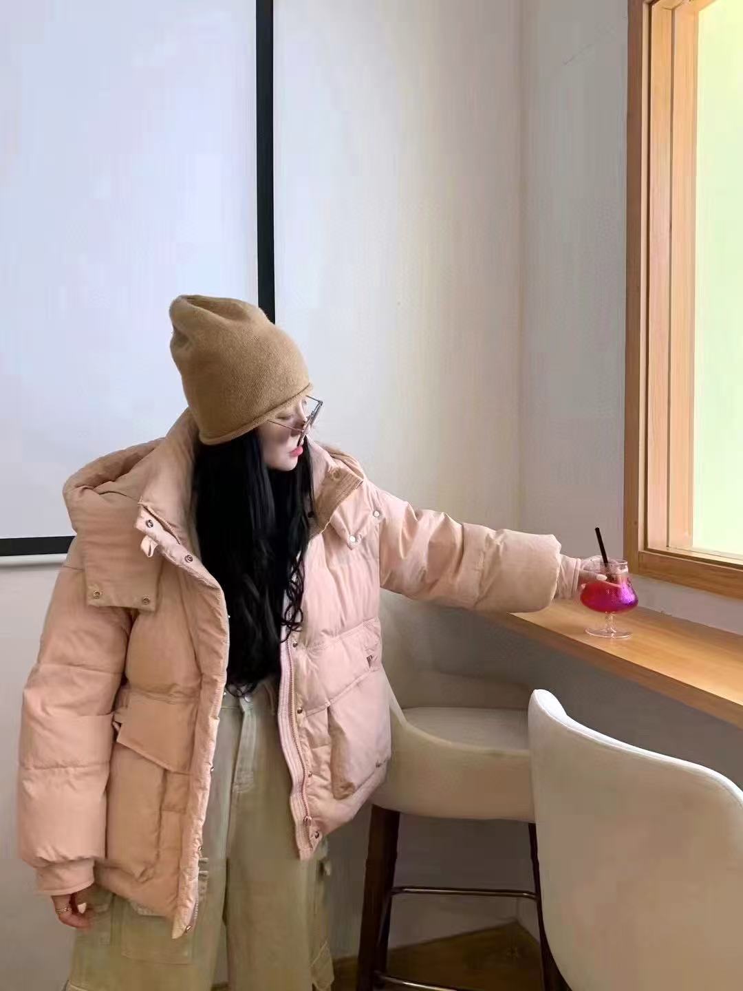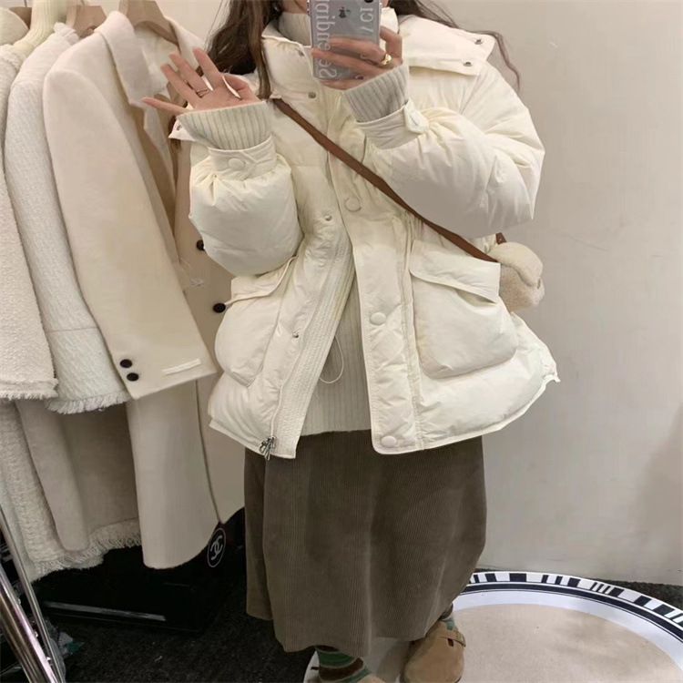 2025冬季新款泡芙连帽羽绒服女短款宽松轻盈白鸭绒面包服外套潮