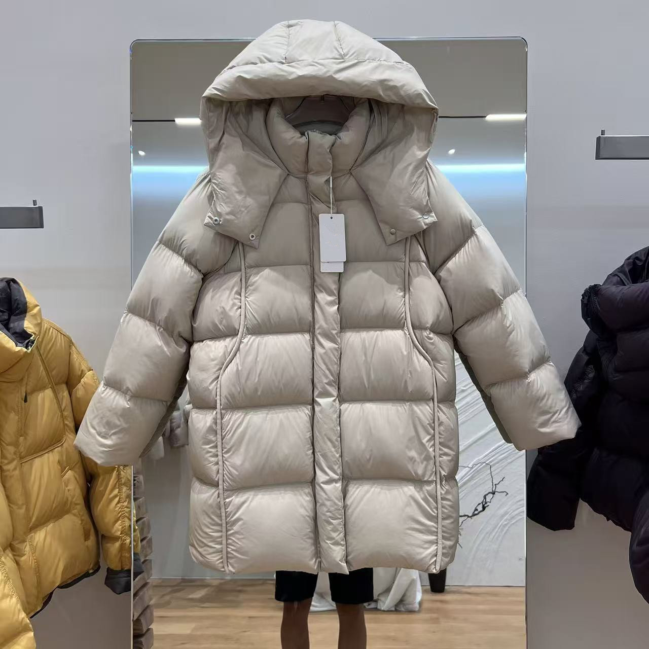 高級ブランドのダウンジャケット、女性用ホワイトダックダウン、カップル向けアウター、軽量でゆったりとした新作2025、フード付きで厚手