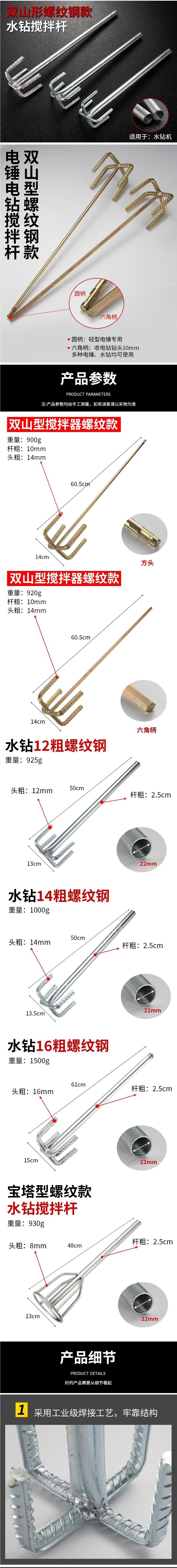 水钻搅灰杆宝塔搅拌杆水泥混凝土腻子油漆瓦工拌灰神器砂浆