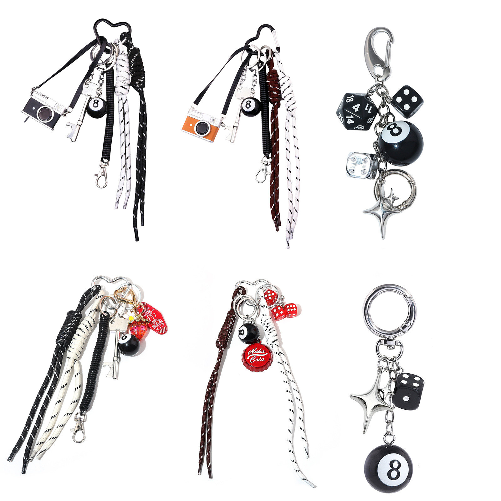 国境を越えて人気の高いファッショナブルな大型カメラキーホルダー、クラシックな異形ダイス、ビリヤードボール、ブラック8個入りペンダント、カップル用飾り