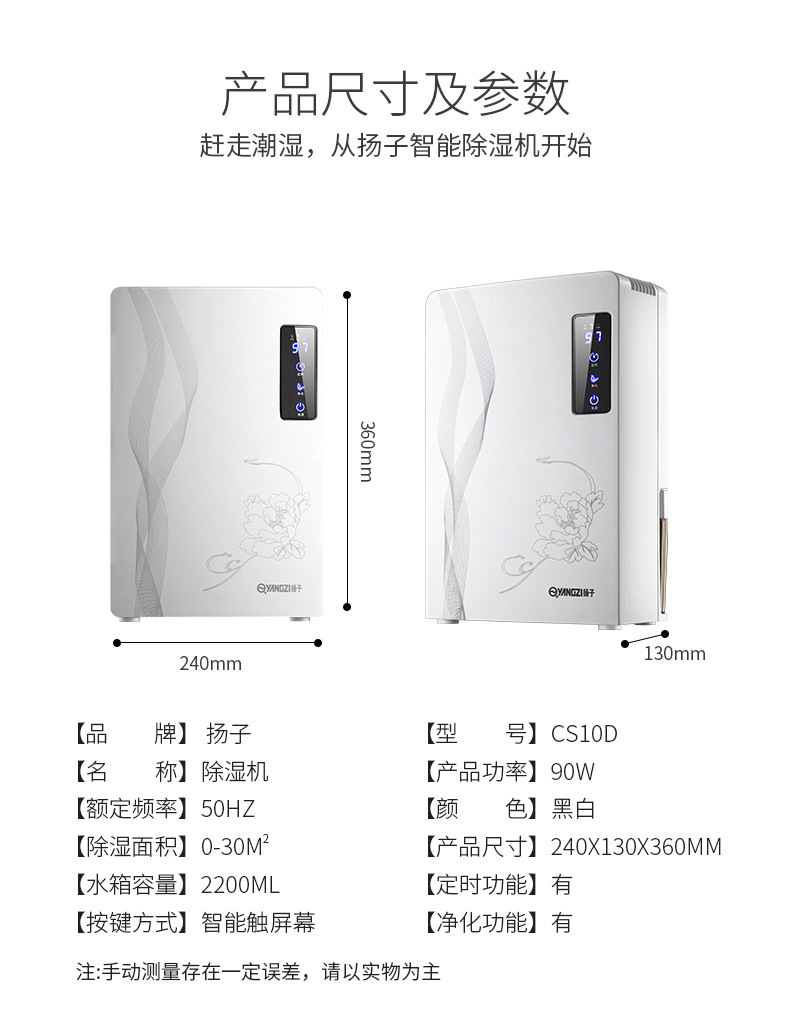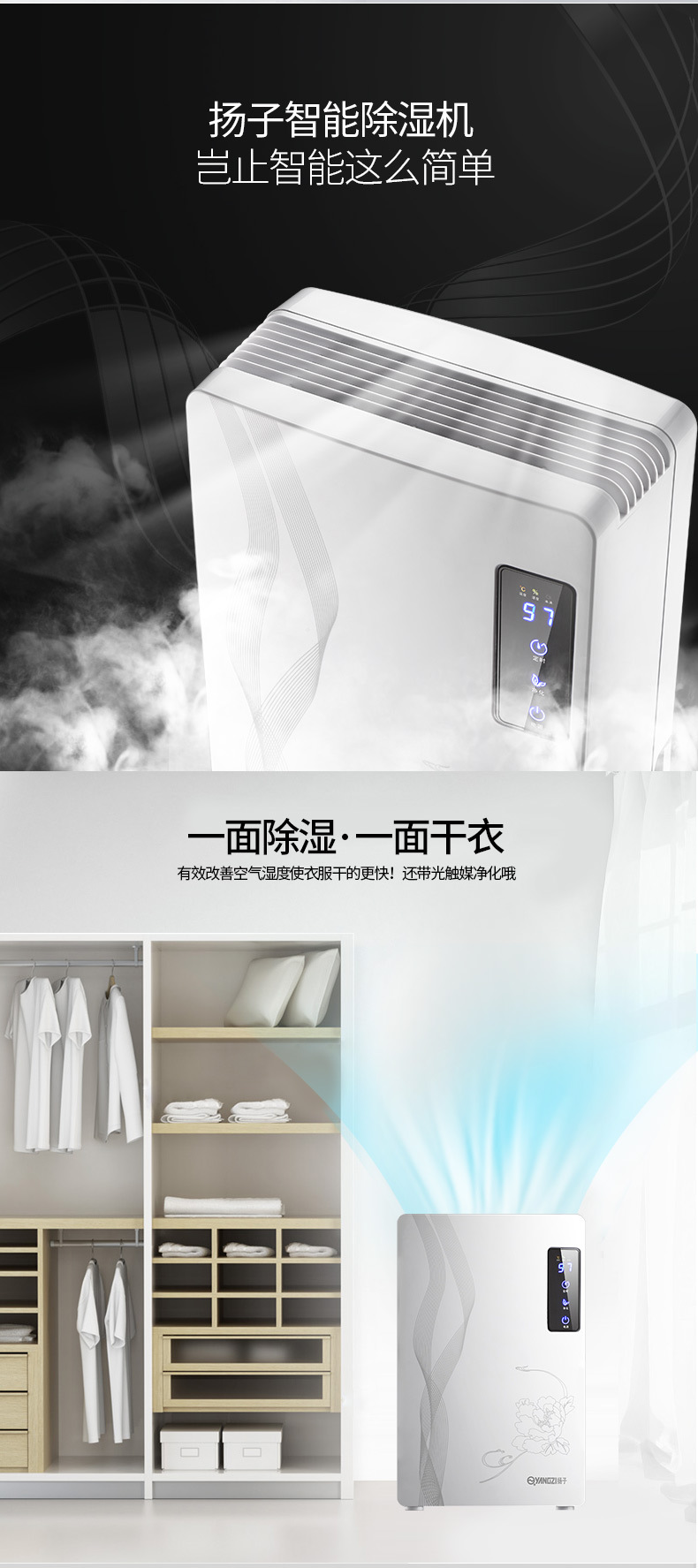 扬子家用除湿机双核吸潮静音除湿器地下室干燥回南天宿舍用抽湿机